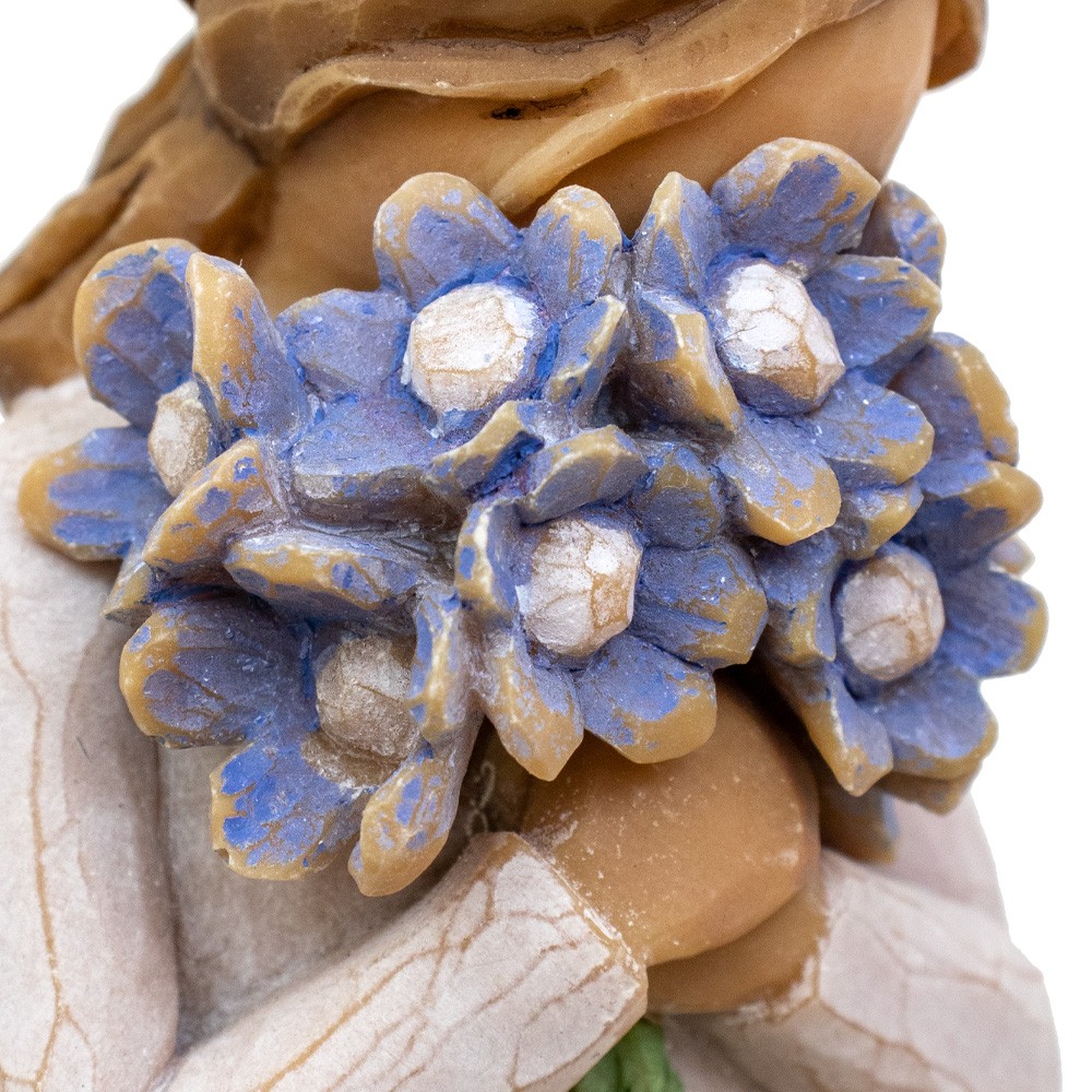 Designed and made by artist Susan Lordi for the Willow Tree collection. It depicts a girl holding a bunch of flowers close to her chest.