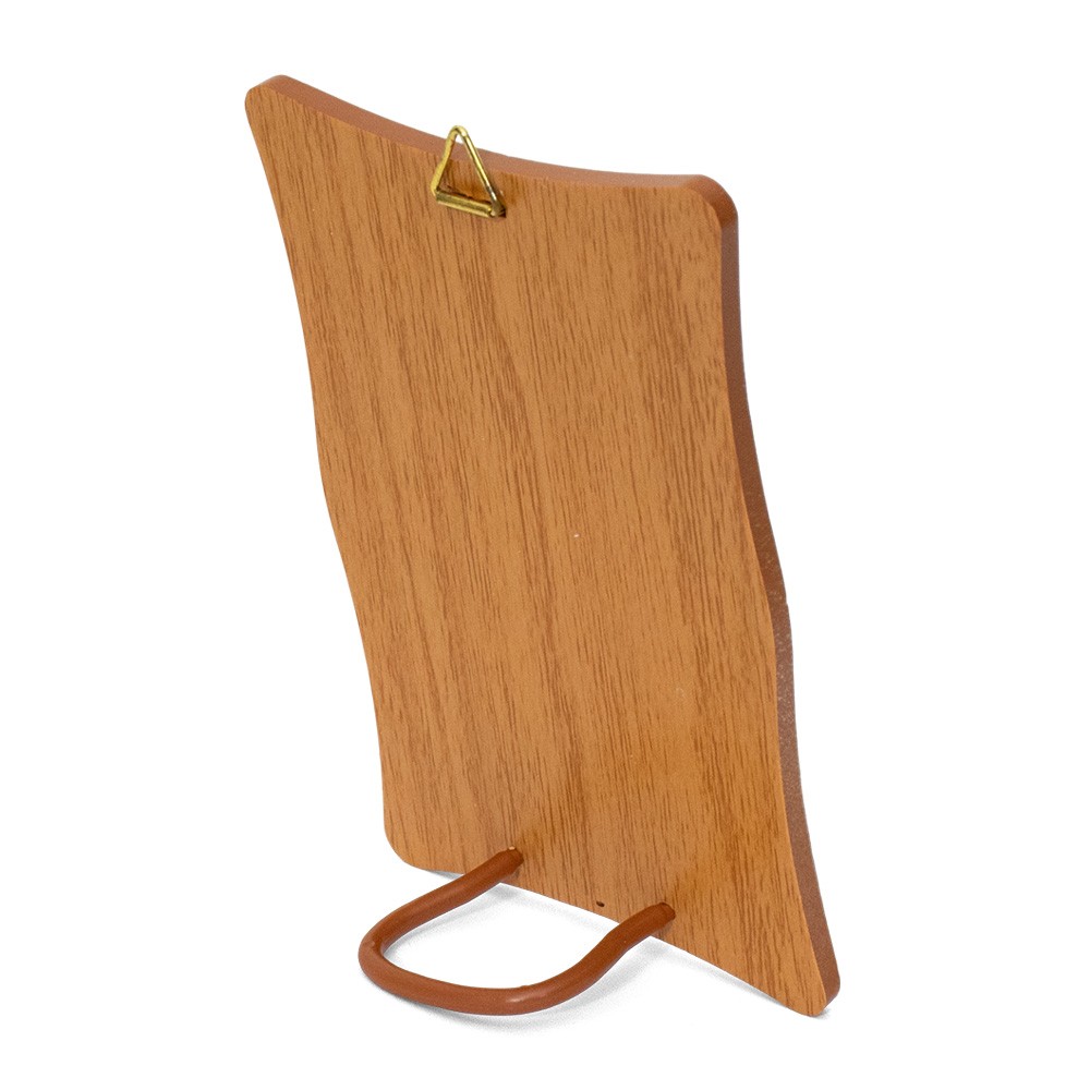 The plaque is shaped from MDF wood and enriched with hot-stamped gold details, measuring 7x11 cm.
