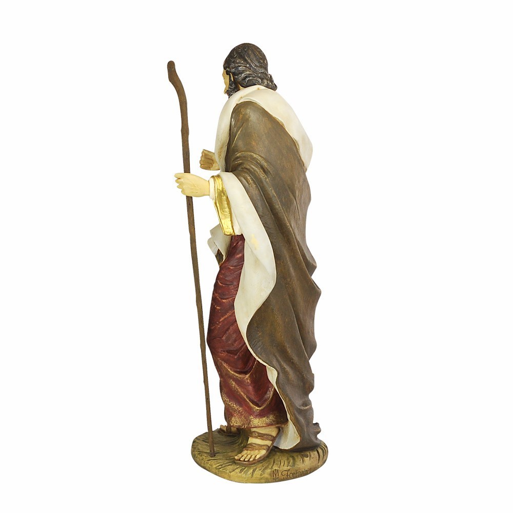 Statue of Saint Joseph with cane (180 cm), made by the Fontanini company. This lovely statue is ideal for large-sized nativity scenes, churches, oratories, squares, etc. Entirely handpainted with care to every detail.