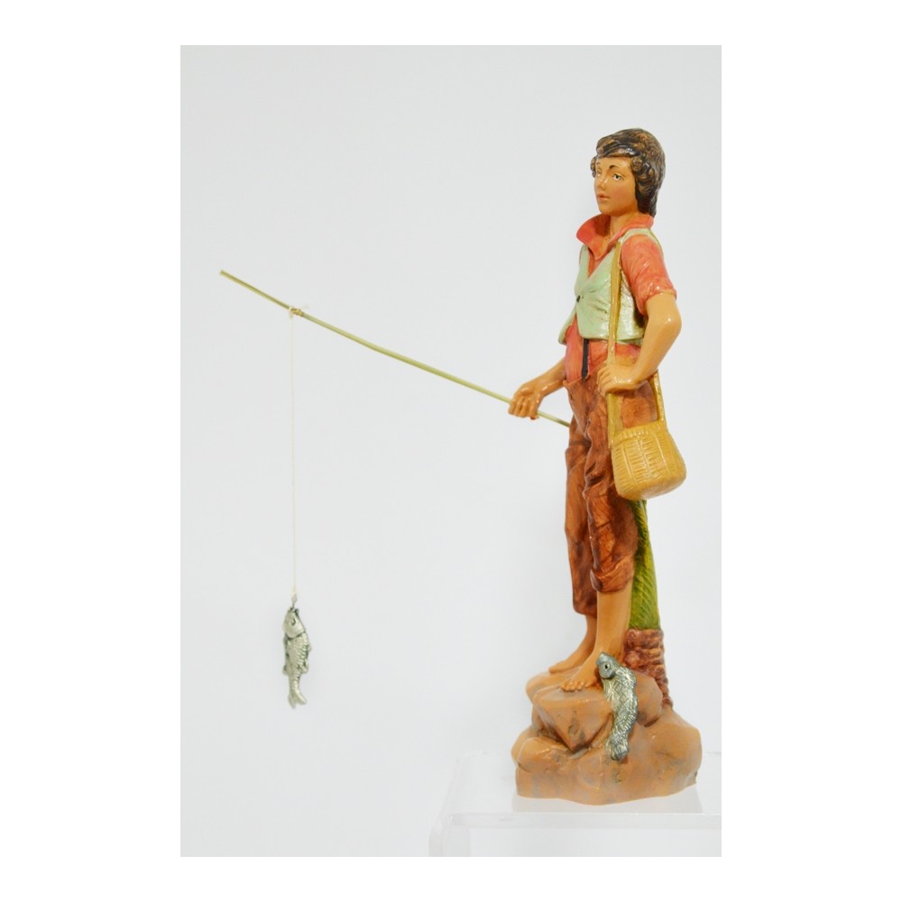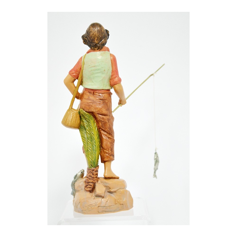 Fisherman with fishing rod and fishes, suitable for Fontanini Nativity scenes (19 cm).