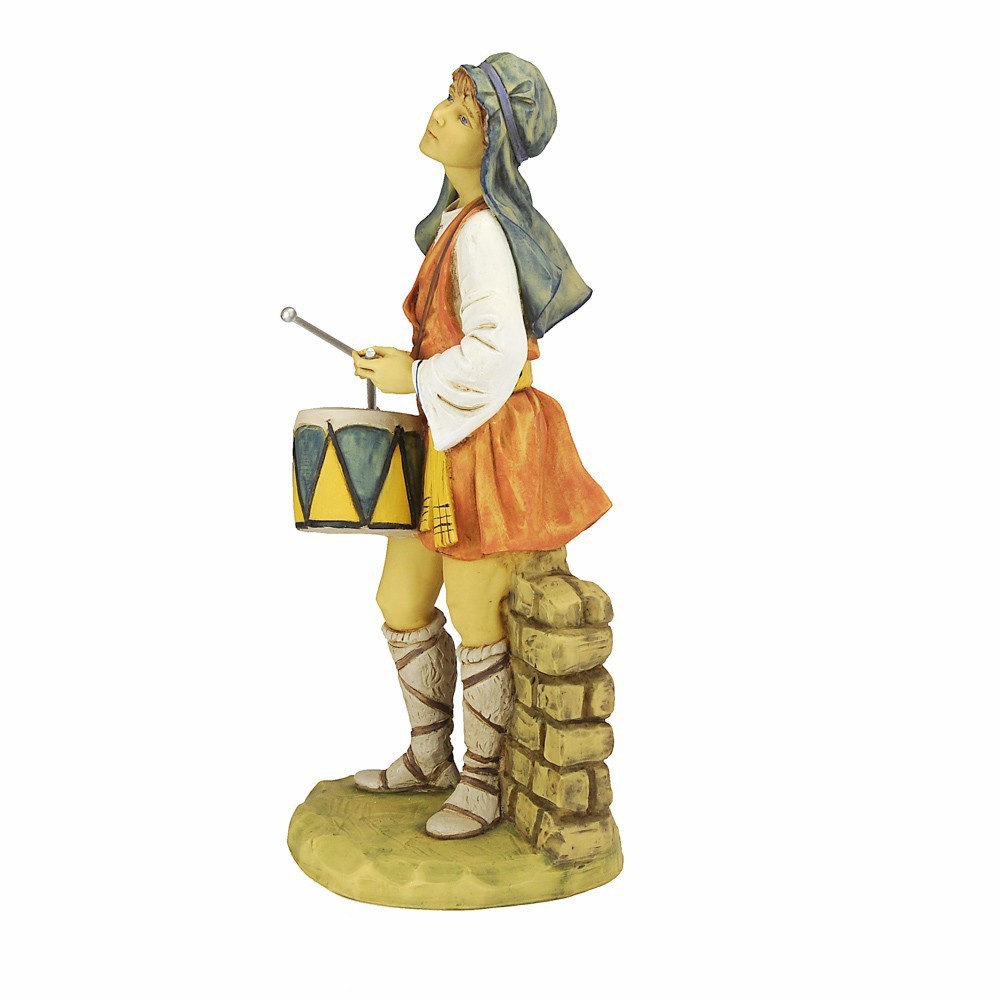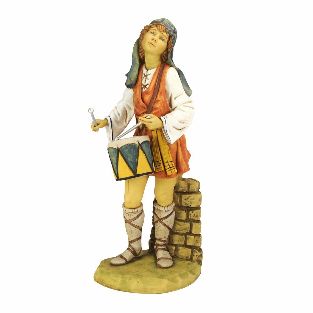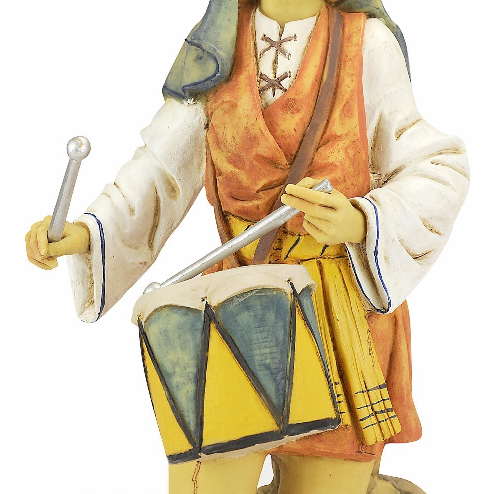Statue depicting a boy playing the drum. Made by the well-known Fontanini company, suitable for 65 cm nativity scenes. Made of resin and finely handpainted.