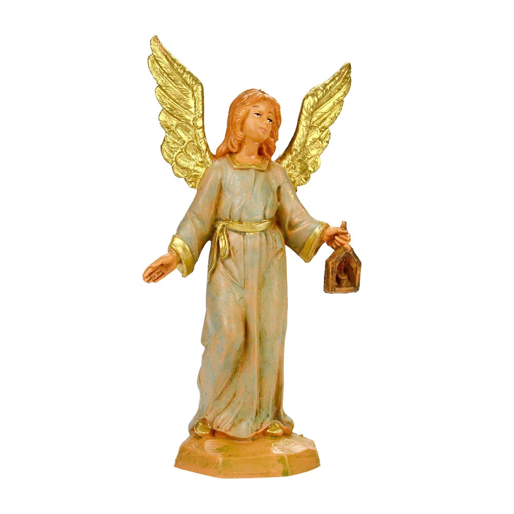 Standing Angel with light blue robe and golden wings. This statue is proportional to Fontanini Nativity Scenes of 9.5 cm.