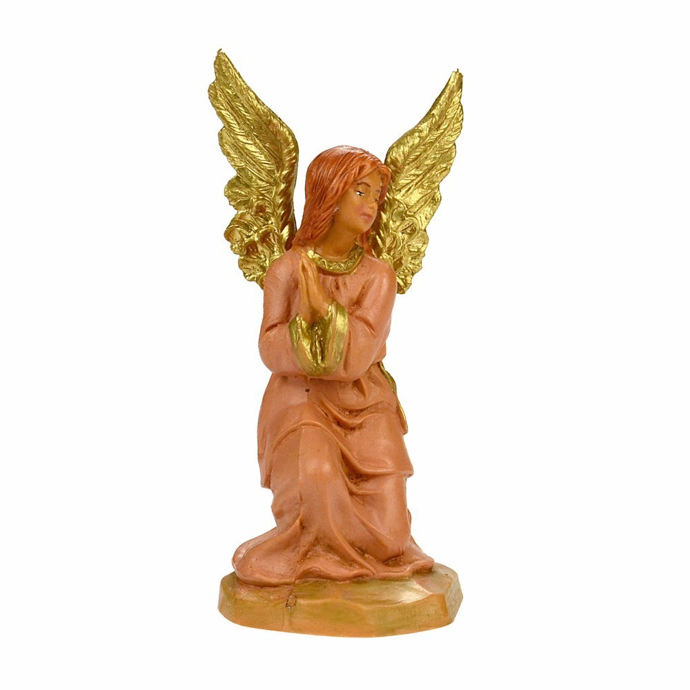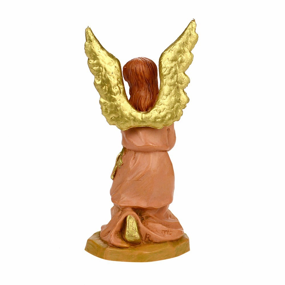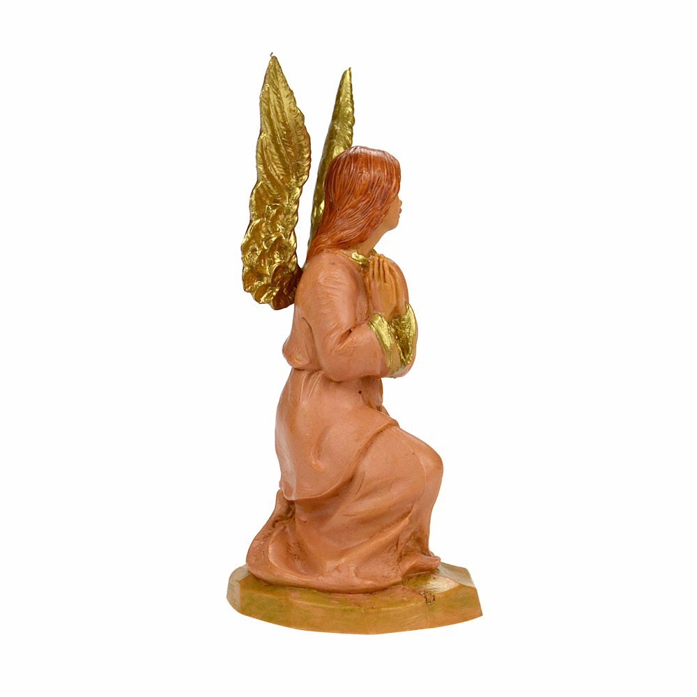 Sitting angel with pink dress and golden wings. This statue is proportional to Fontanini Nativity Scene of 9.5 cm.