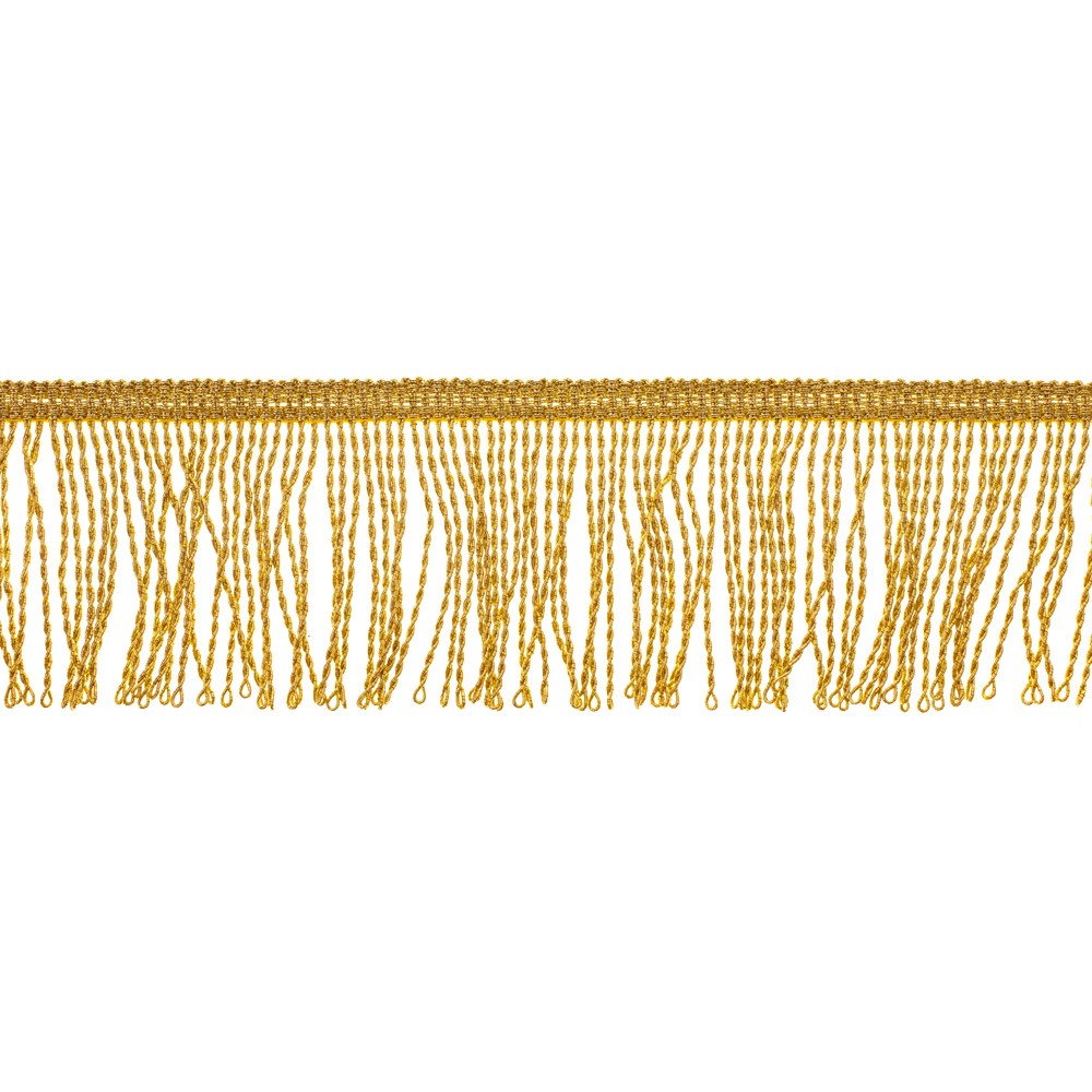 Fringe trim in fine gold, suitable to embellish the edges of liturgical vestments.