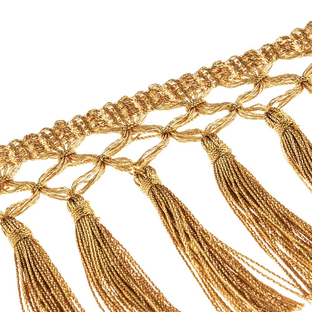 Passementerie: handwoven fringe trim with tassels in half fine gold thread. Entirely finished by hand. Excellent quality passementerie for liturgical vestments and clothing. Made by an Italian company.