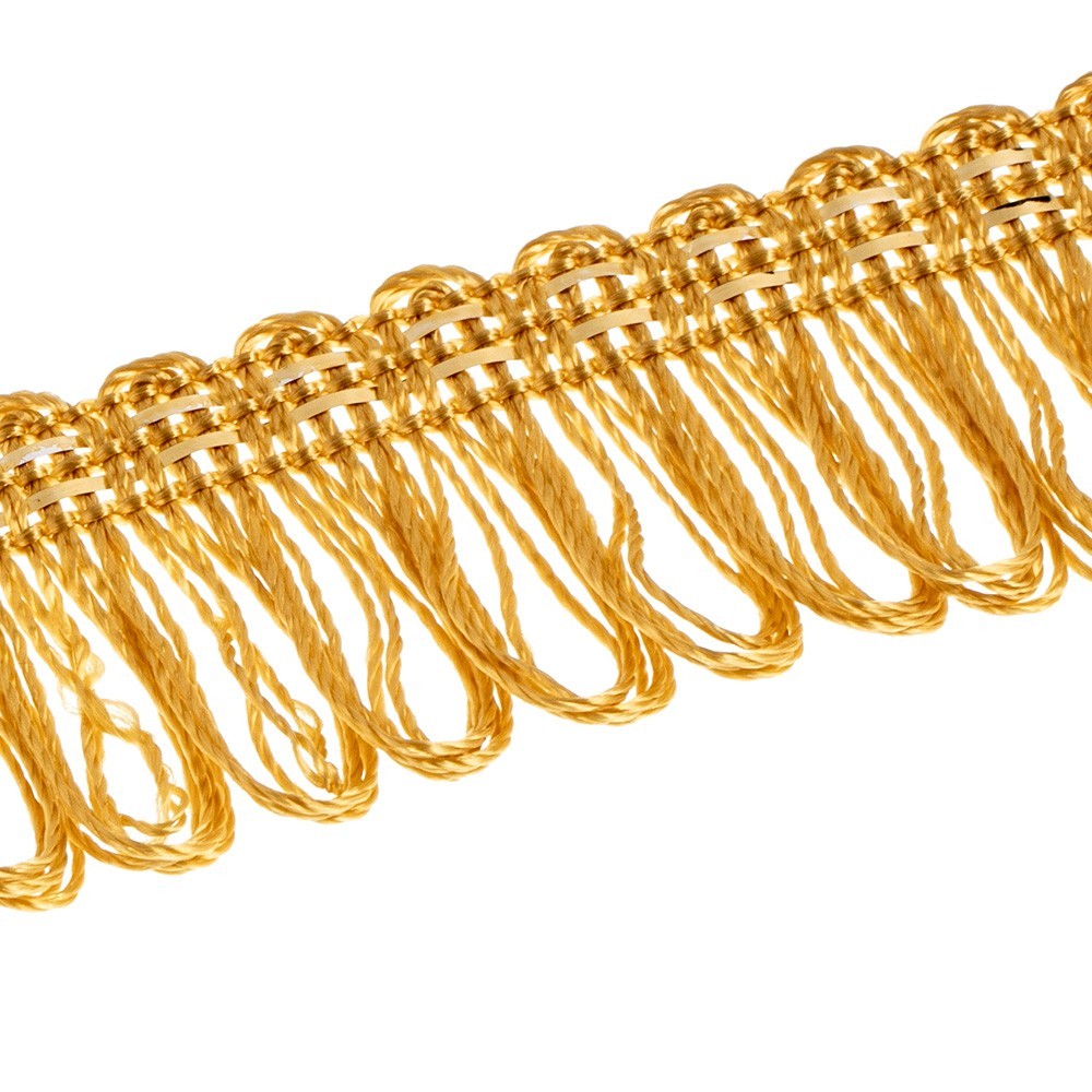Stainless gold fringe trim for liturgical vestments.