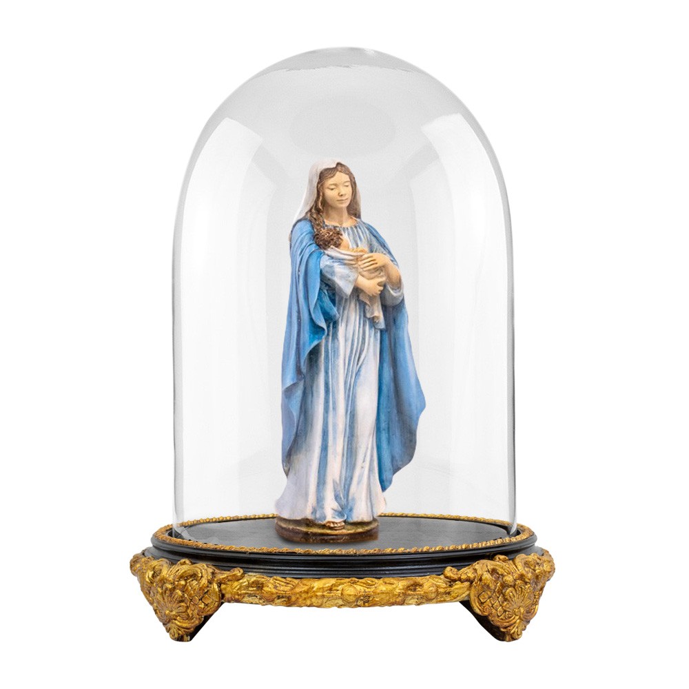 Glass dome with base suitable for protecting sculptures, statues or Nativity scene.