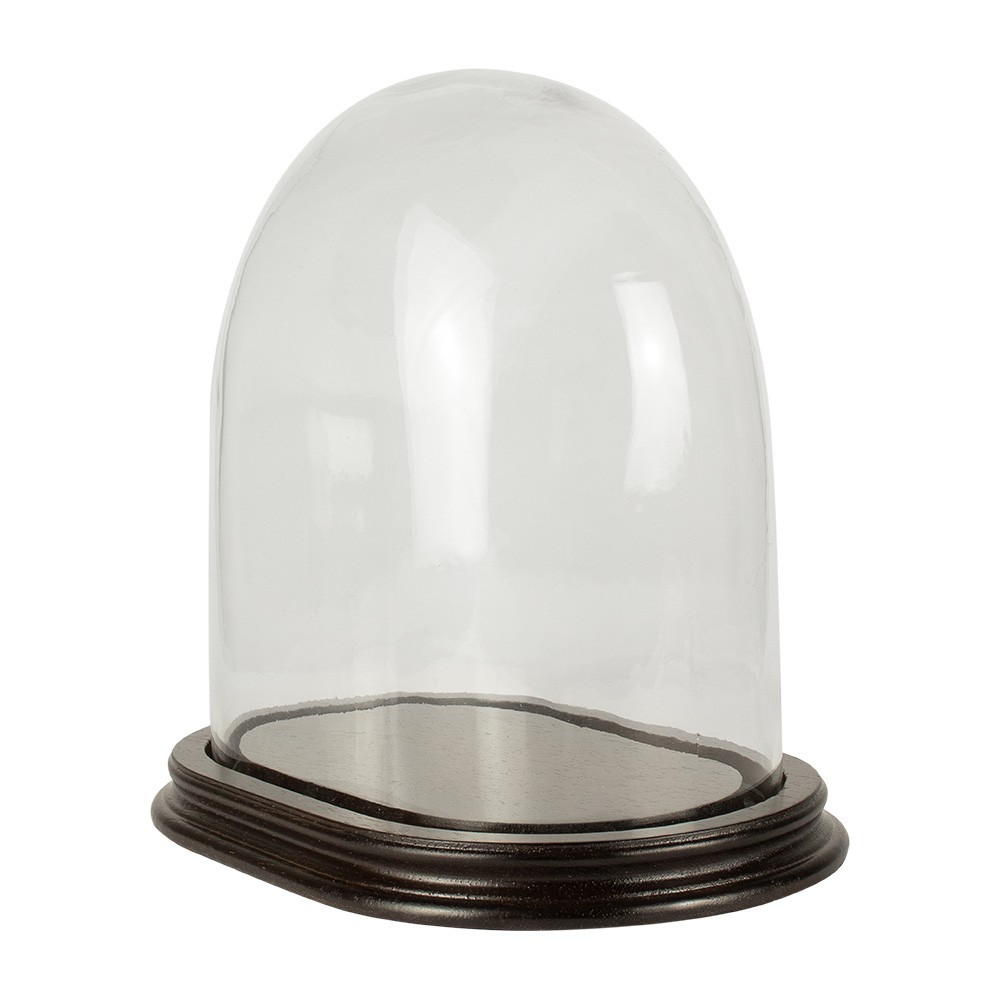 Glass bell with oval base in dark wood. These bells in blown glass are suitable for protecting statues, sculptures and Nativity scenes.