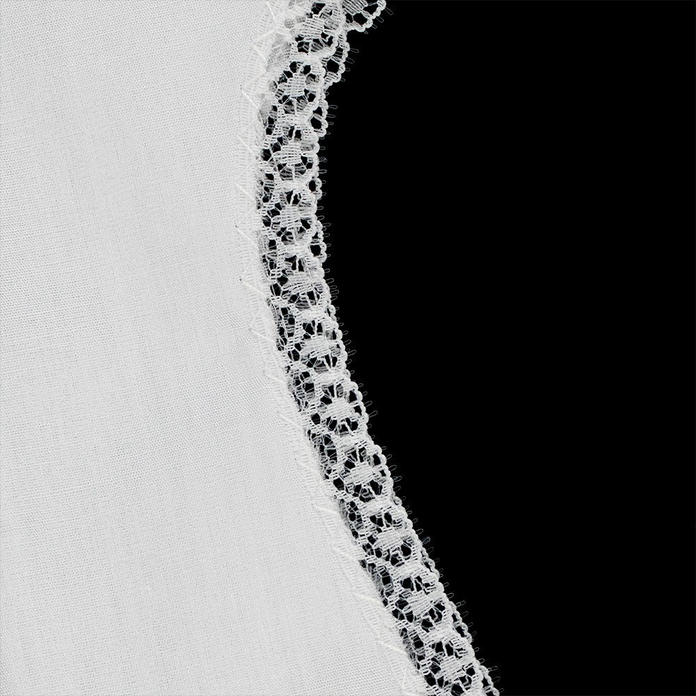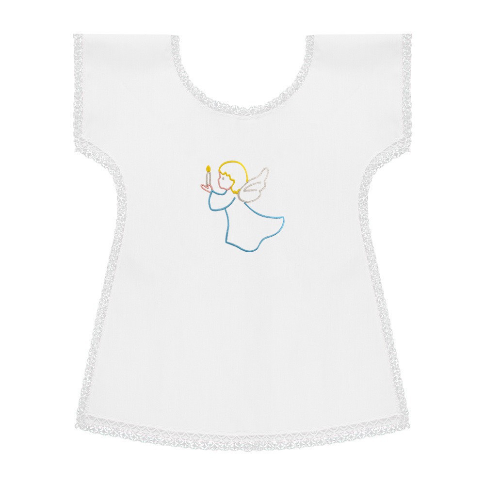 This gown for the rite of Baptism is white, has a lace border and a fine embroidery of an angel.