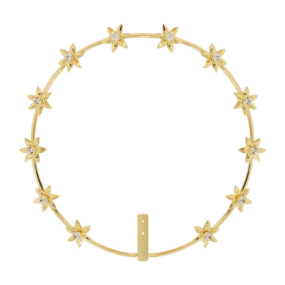 Golden brass star for Madonna statue, with a large 25 cm diameter. The star is adorned with 12 rhinestone-studded stars, all hand-soldered with great attention to detail.