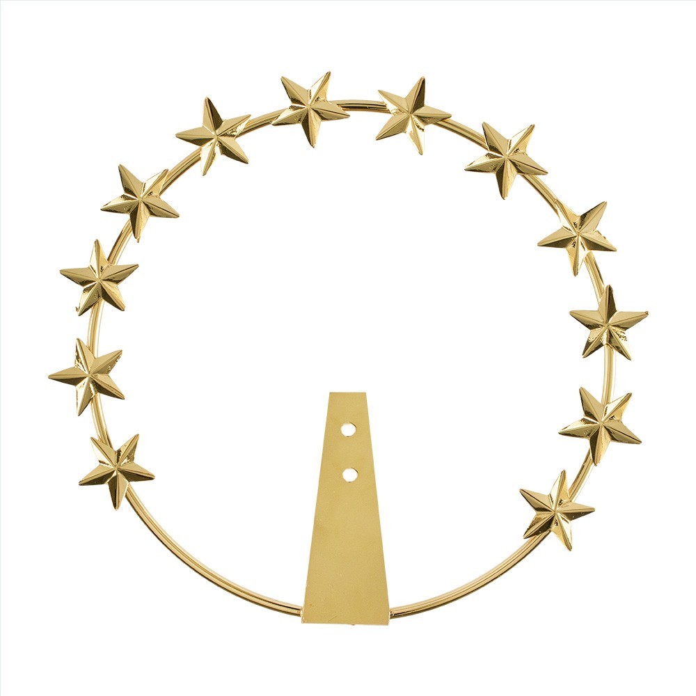 Halo of stars in golden brass for Madonna statues. Classic style halo composed of 12 stars, suitable for statues of the Virgin Mary. Made of brass with golden finish. Made in Italy.