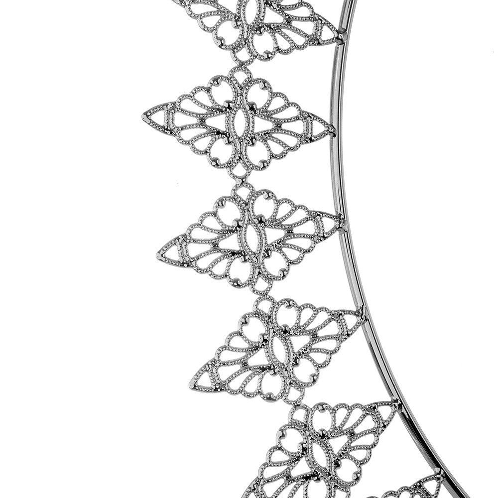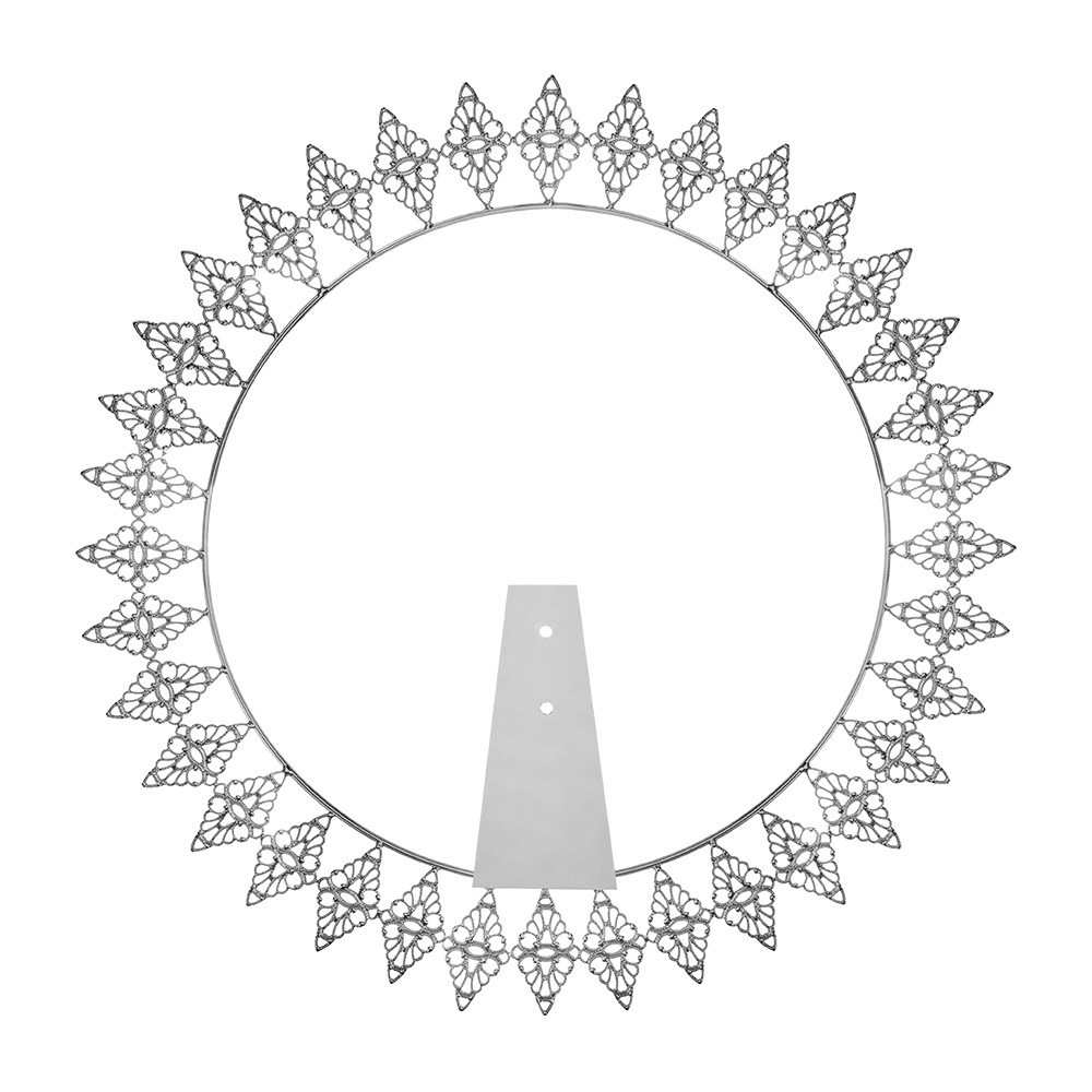Elegant halo in silver brass, suited to adorn statues of the Virgin Mary. This halo of rays is distinguished by filigree ornaments placed around its circumference.