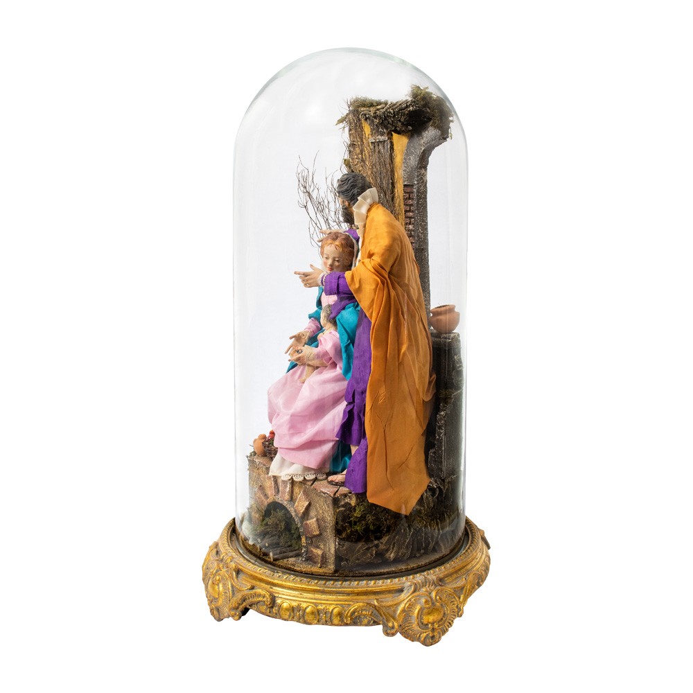 Neapolitan Nativity scene inside a glass bell 30x60 cm.