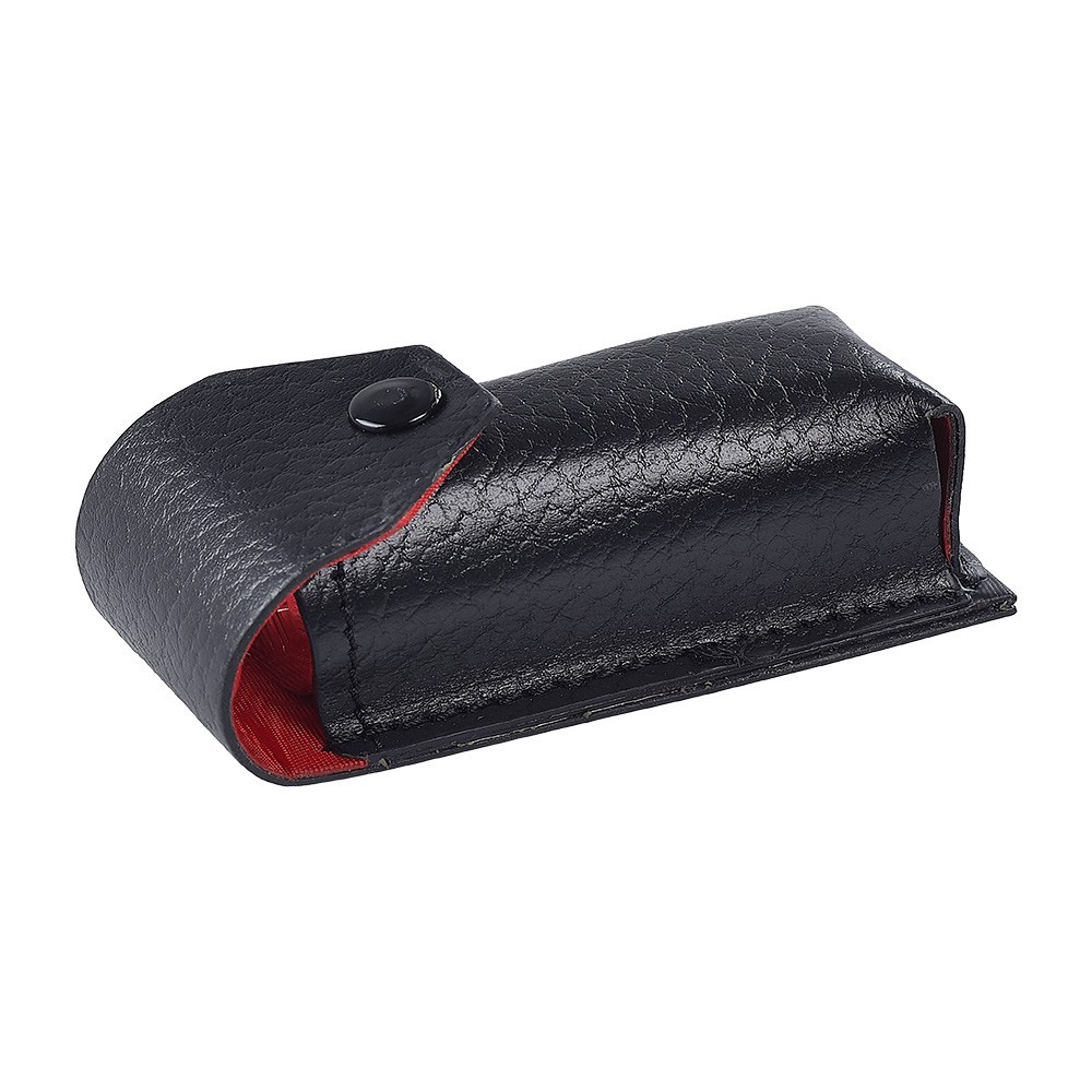 Triple jar for holy oils complete with case in black imitation leather with red fabric interior.
