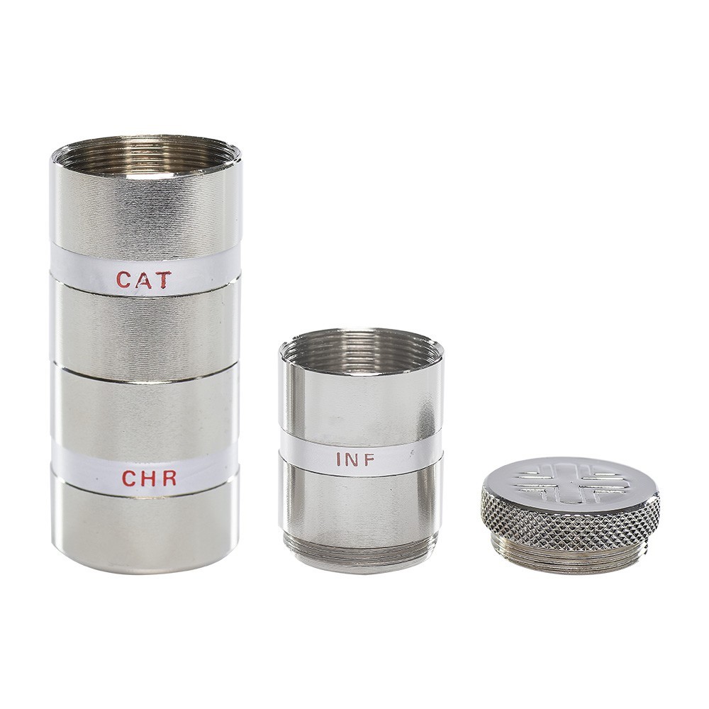 The jars are entirely made of silver-plated metal and feature a red writing (CAT, INF and CHR). Made in Italy.