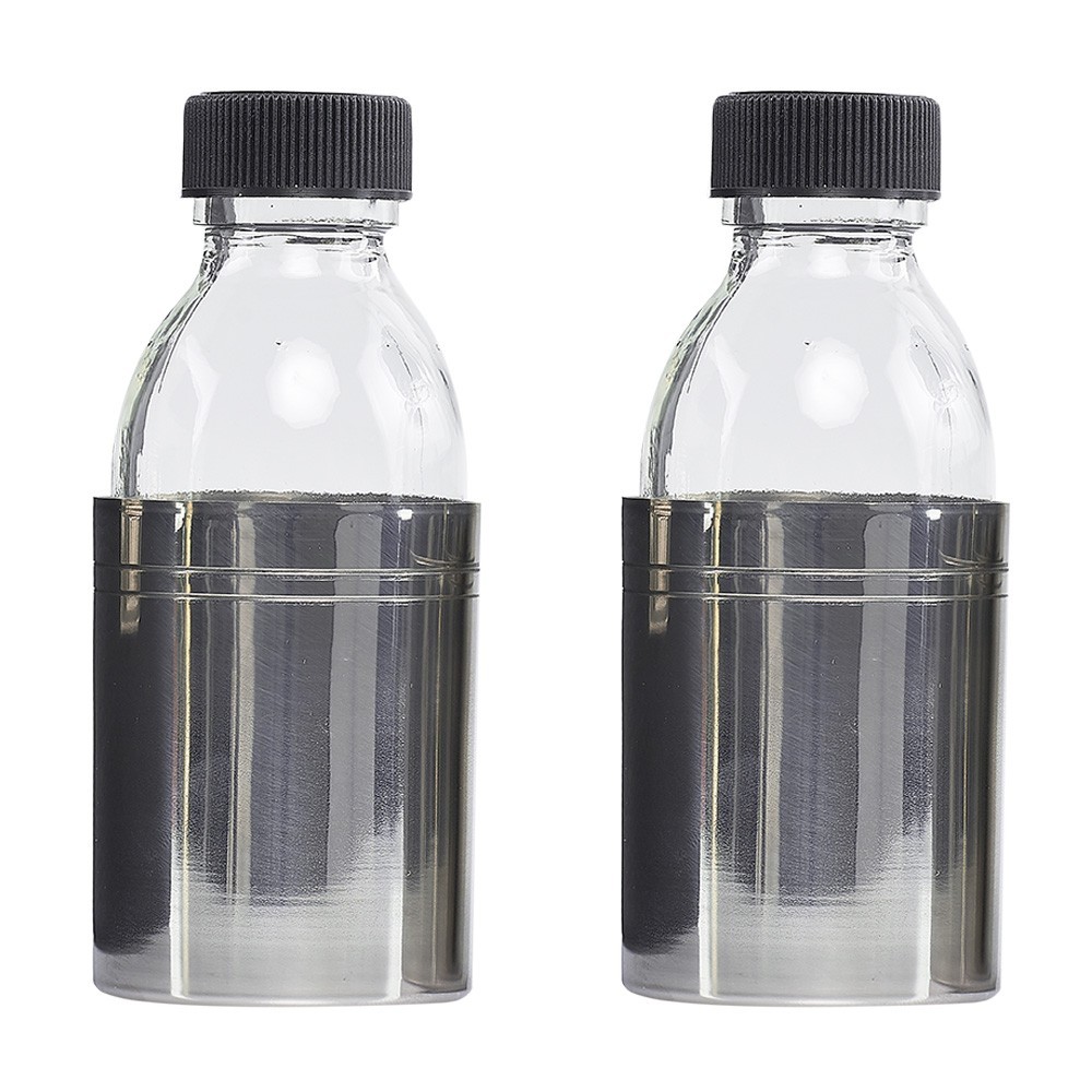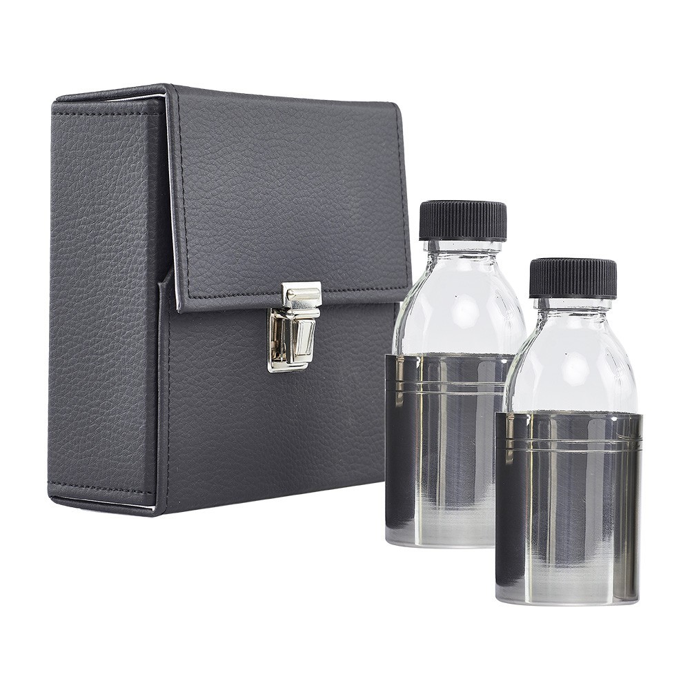 Case with two bottles (125 cc) for Holy oils. The bottles are made of glass and silver-plated metal, while the cap is in plastic.