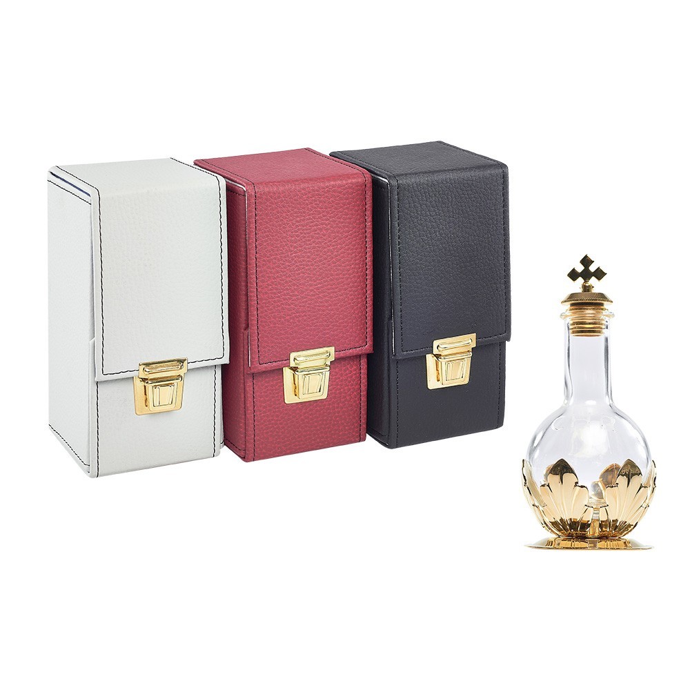 Case with container of 100 cc for holy oils.