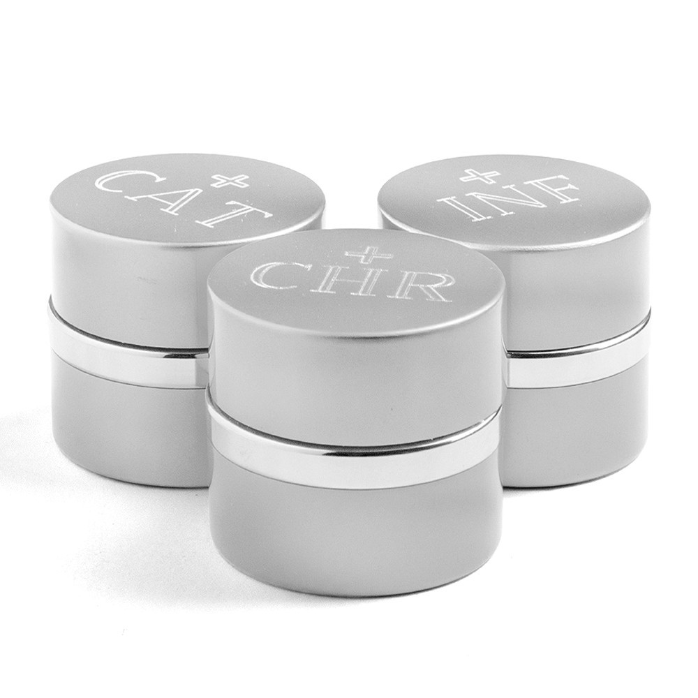 Kit complete with three holy oil stocks in silver (4 cm).