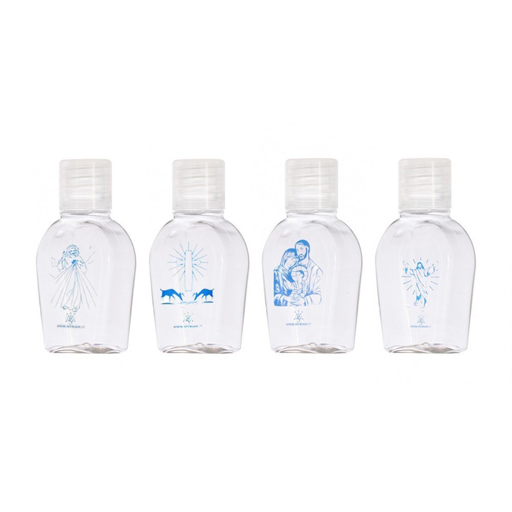 100 bottles of 50 cc for Holy Water with SCREEN-PRINTED image of the Holy Family.