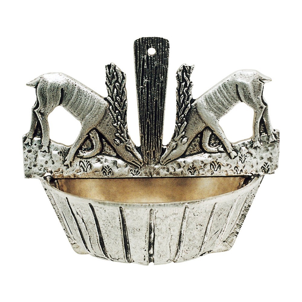 This sacred furnishing is entirely made of cast silver-plated brass and represents two deer drinking at the font.