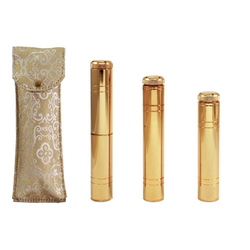 Case in gold jacquard satin fabric. Complete with aspergillum.
