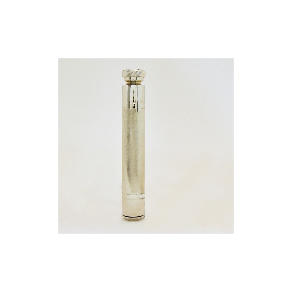 Small holy water sprinkler in brass with silver finish, length 9.2 cm.