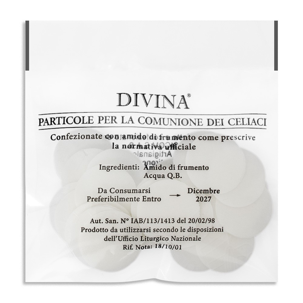 These gluten-free altar breads are ideal for the Eucharistic Celebration, produced in full compliance with current regulations for gluten-free food processing.