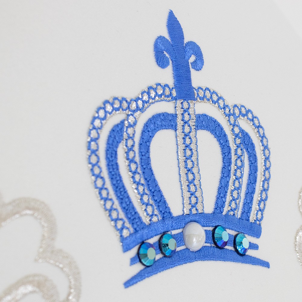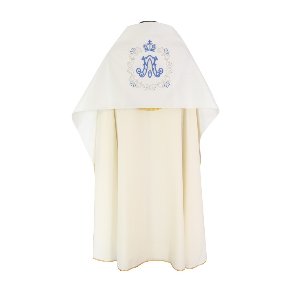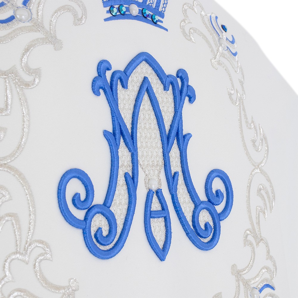 Finely decorated with embroidery of the Marian monogram made using high quality blue and silver threads.