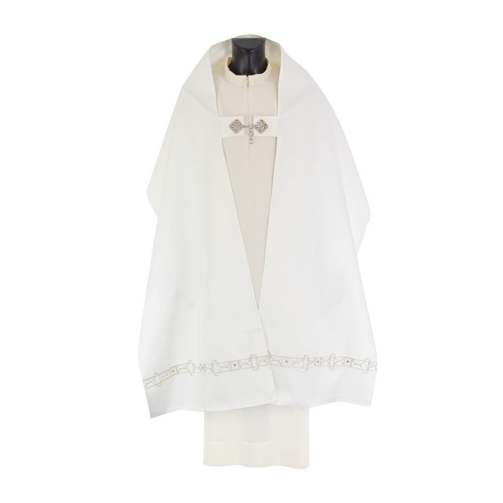 This vestment is made of light, fresh and soft polyester fabric. Provided with clasp in silver-plated brass and pockets with inner lining.
