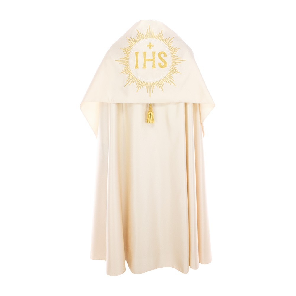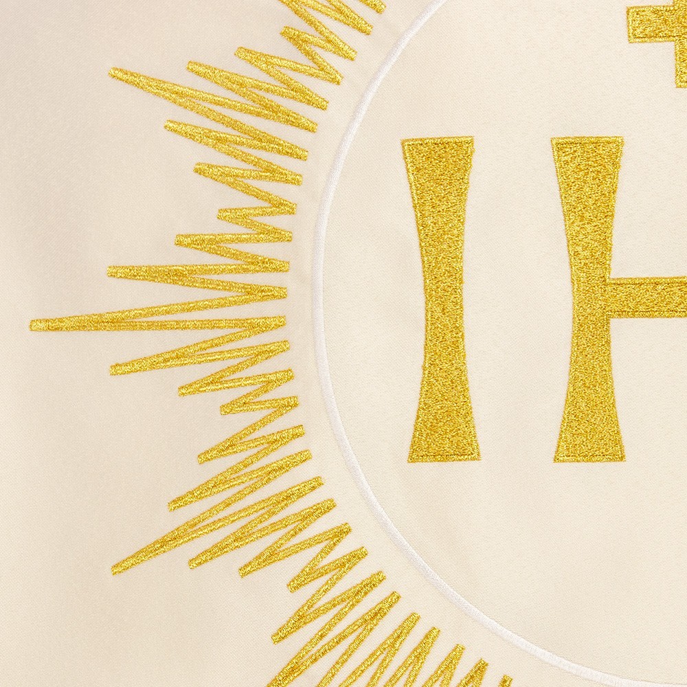 Humeral veil with JHS embroidery. Humeral veil of ecru ivory color with machine embroidery of IHS made with great care to every detail.
