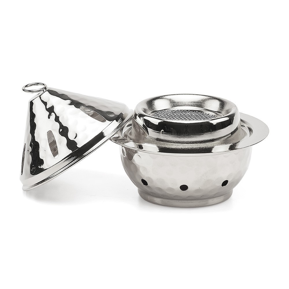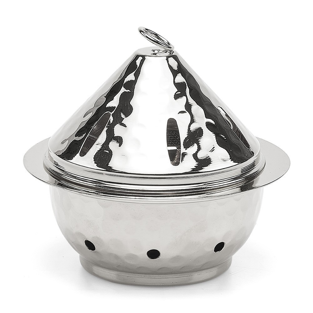 Tealight incense burner in nickel-plated brass. The height of the incense burner is 11 cm. Its diameter is 11.5 cm.