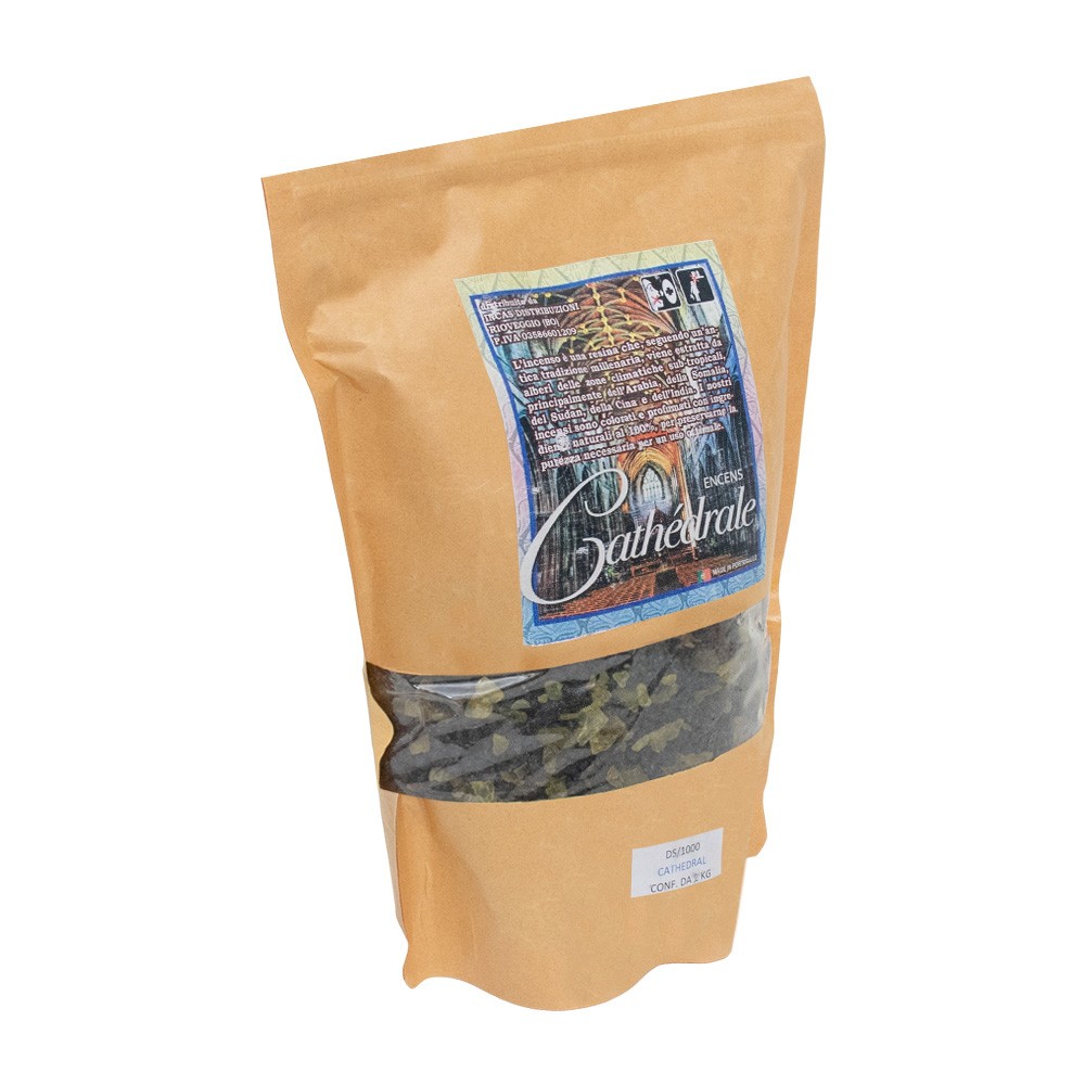 Cathedral incense in grains, packaged in a resealable bag of 1 kg.