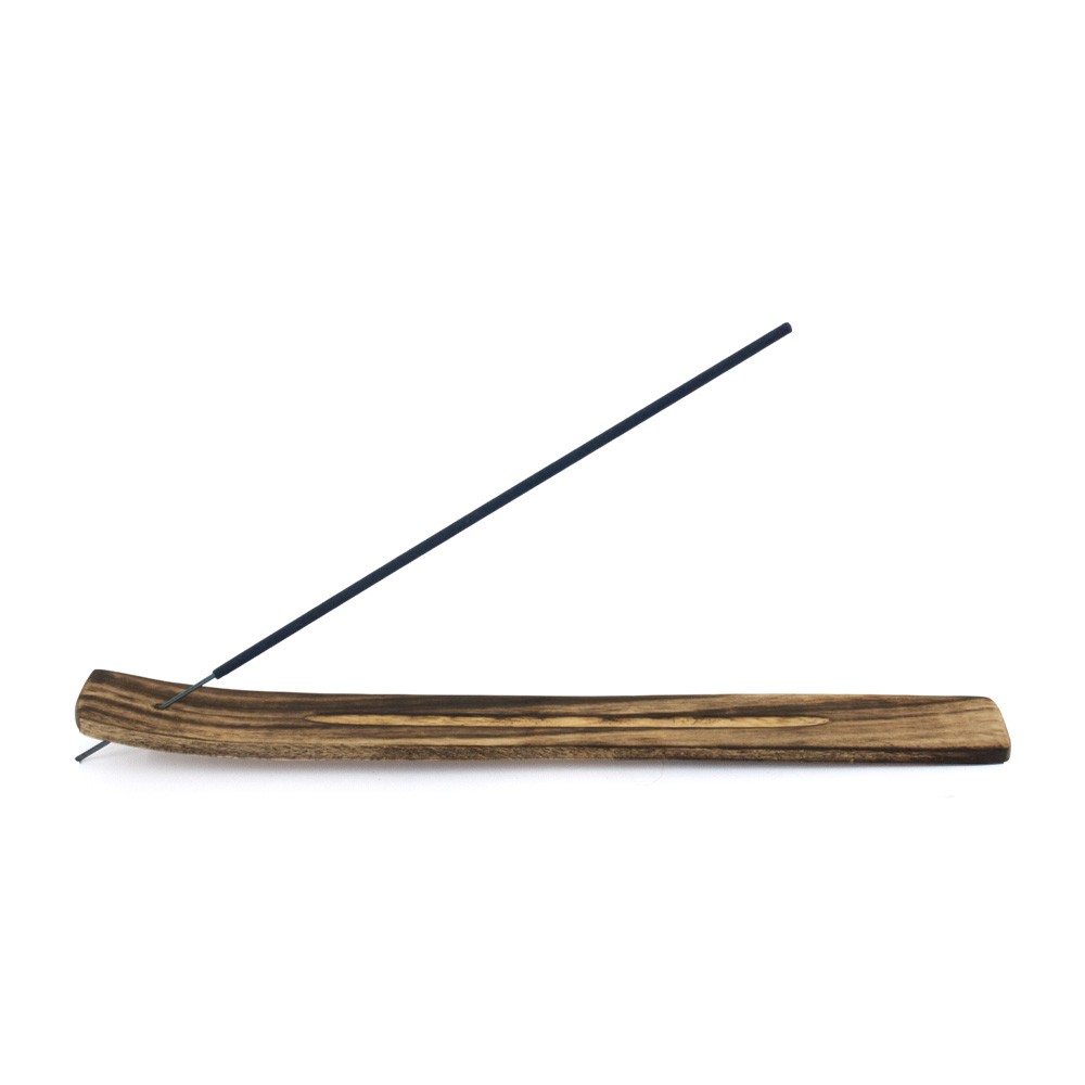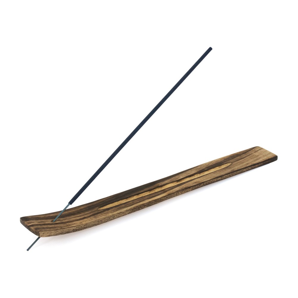 The sticks, 23 cm long, release the unmistakable aroma of myrrh, a fragrance used for centuries in liturgical and devotional traditions. The wooden holder measures 25.5 x 3 cm.