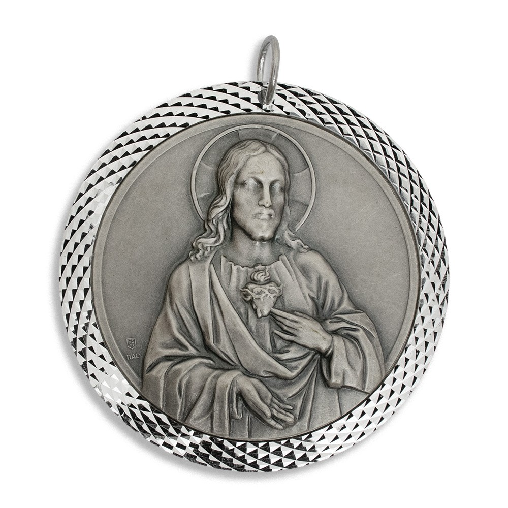 Made of aluminium and silver-plated brass with embossed image of Jesus.