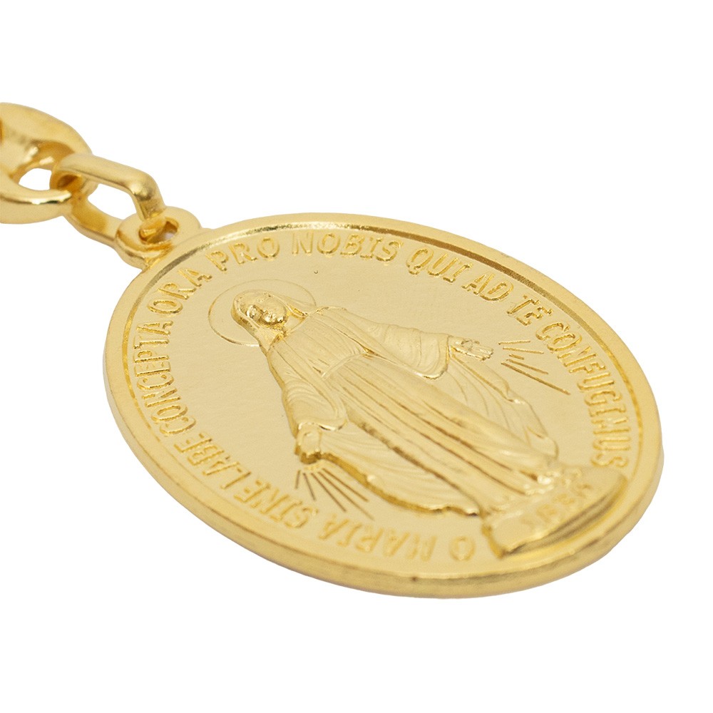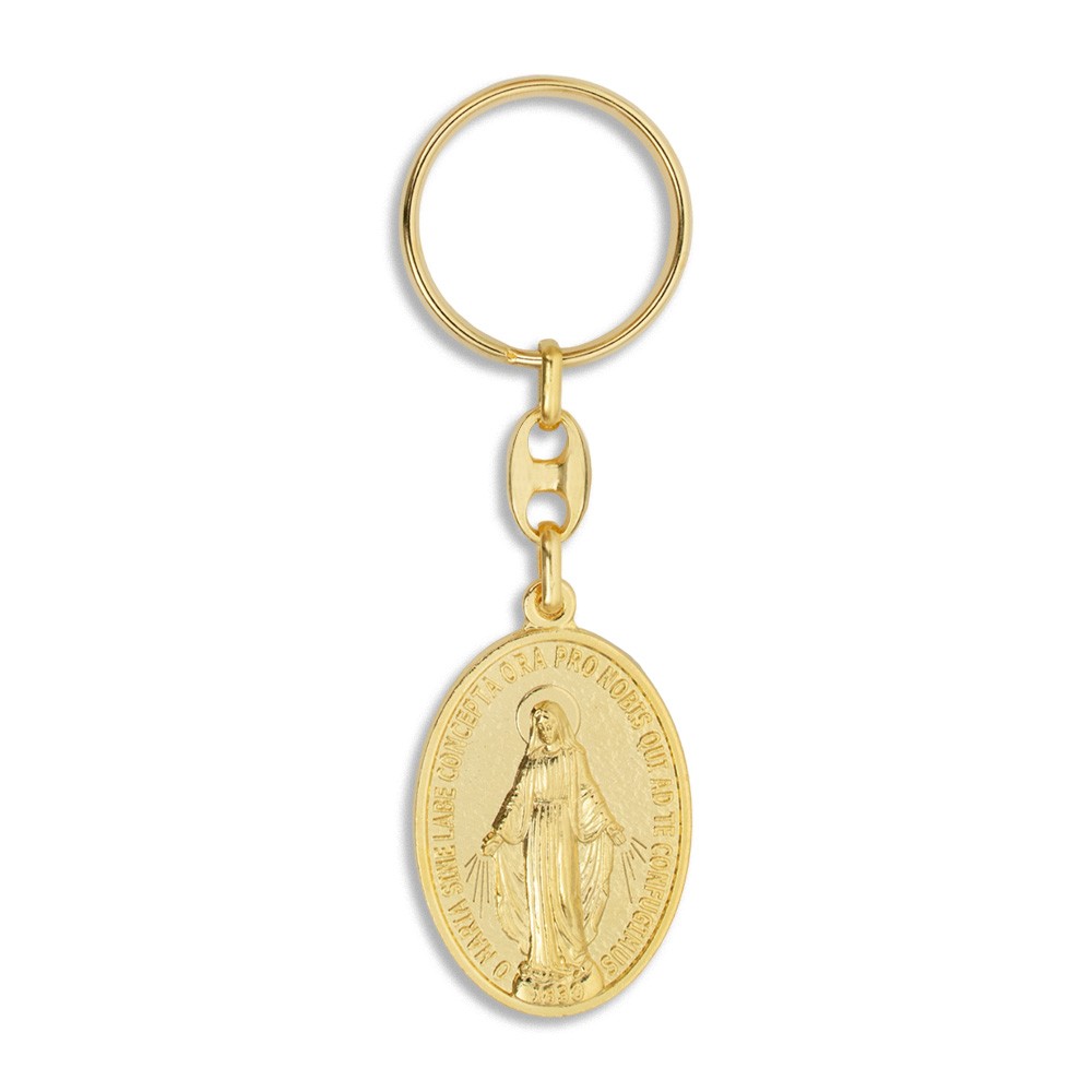 The keychain is made entirely of gold-tone metal, with an oval shape (4x2.7 cm).