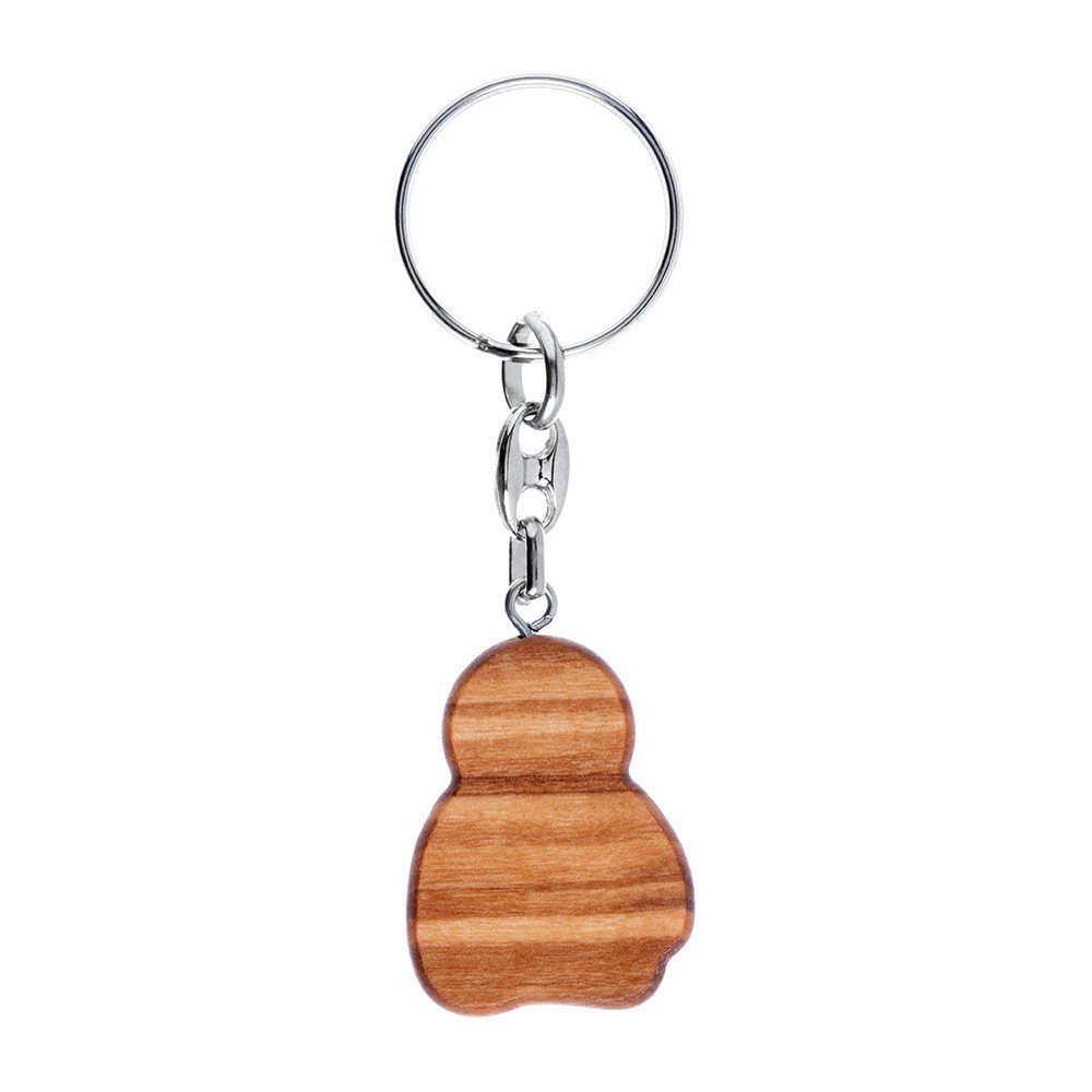 Olive wood keychain with plaque depicting Our Lady of Mount Carmel.