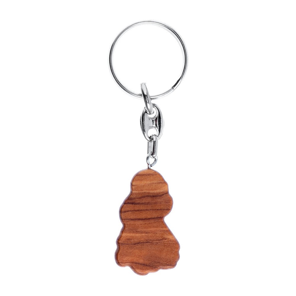 Olive wood keychain with plaque depicting Our Lady of Mount Carmel.