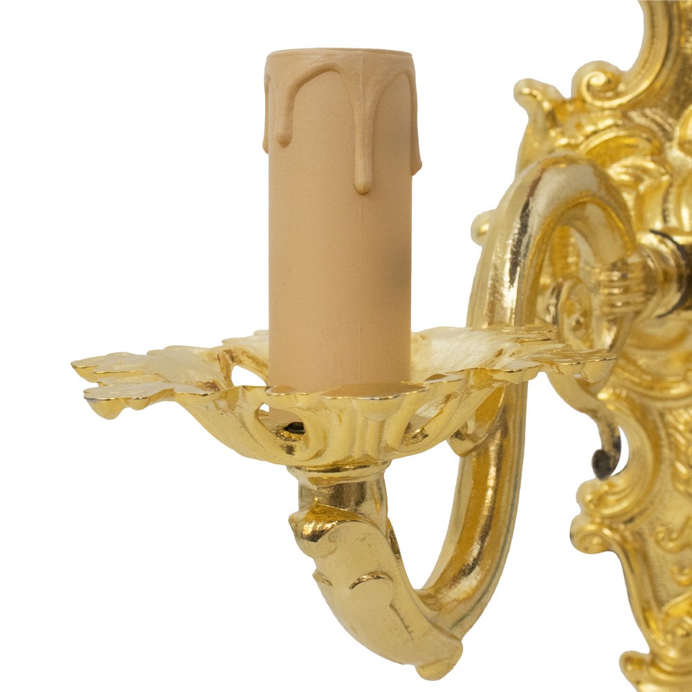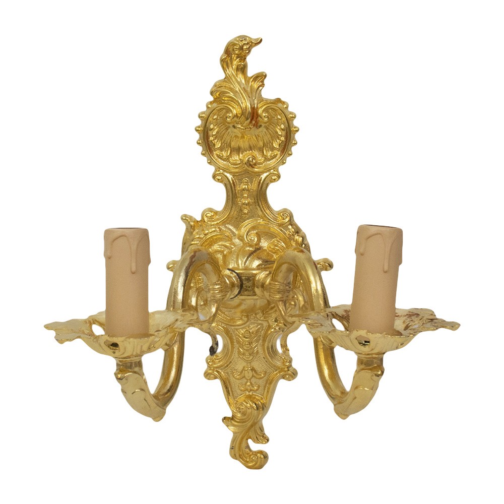 Wall lamp for church with two branches, made of gold brass.