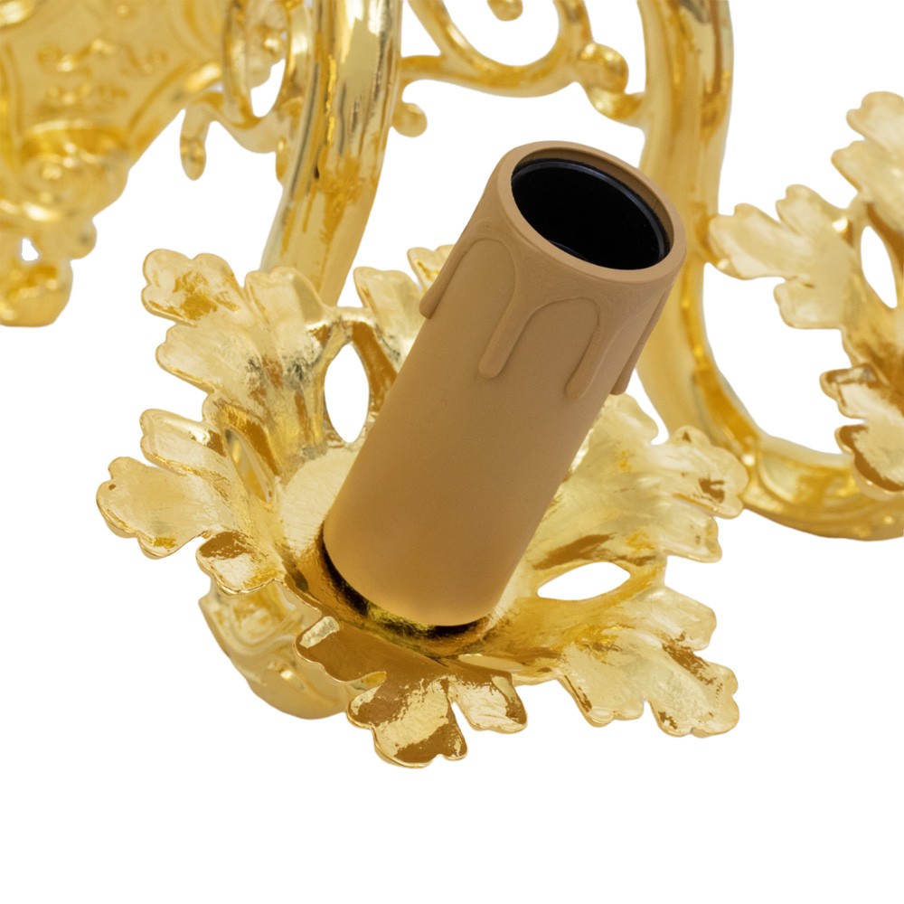 Entirely made of golden brass, complete with three candle casings of 2 cm diameter. The llight bulbs are not included (do not use light bulbs with an electricity absorption greater than 40W).