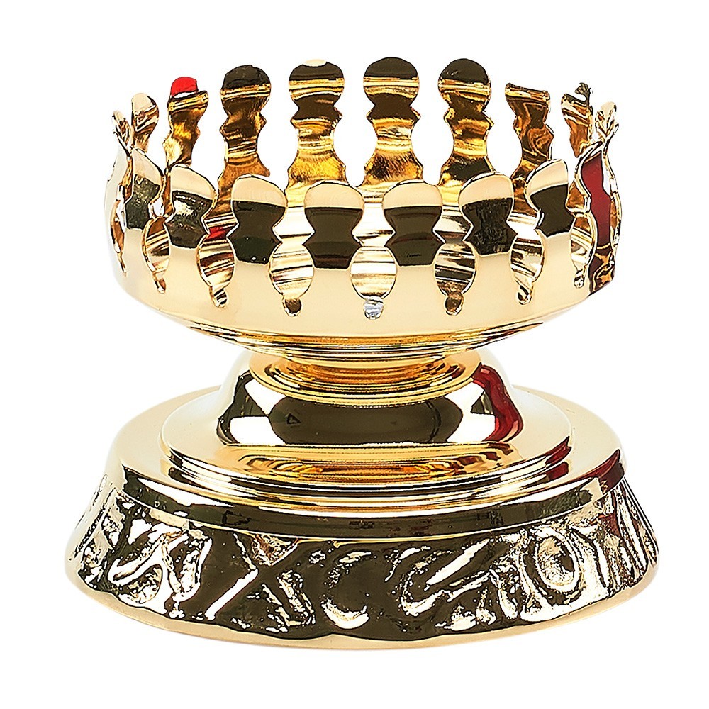 This holder is suitable for red glass and is made of bronze with gold finish.