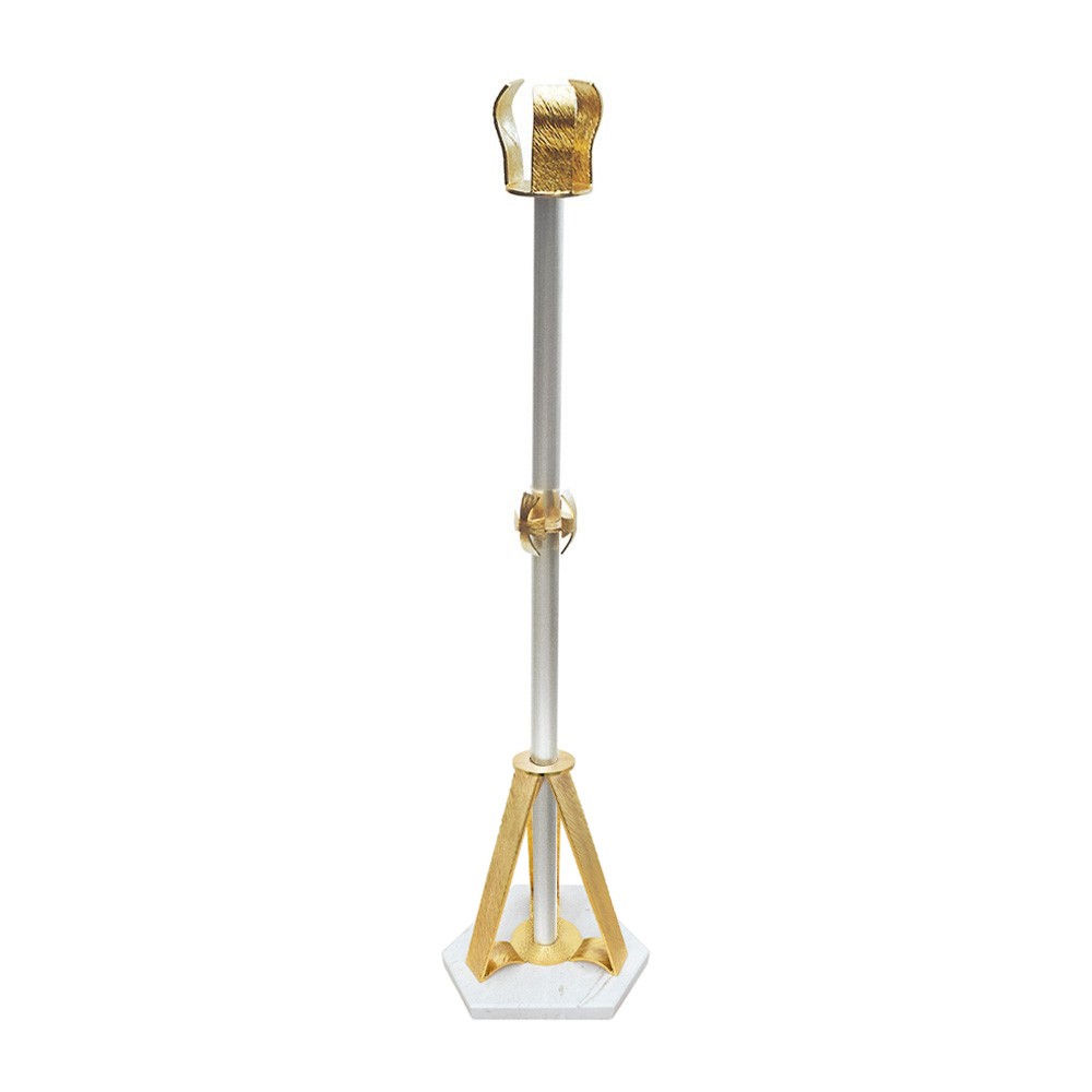 Candlestick for Blessed Sacrament lamp in two-tone brass, h 110 cm.