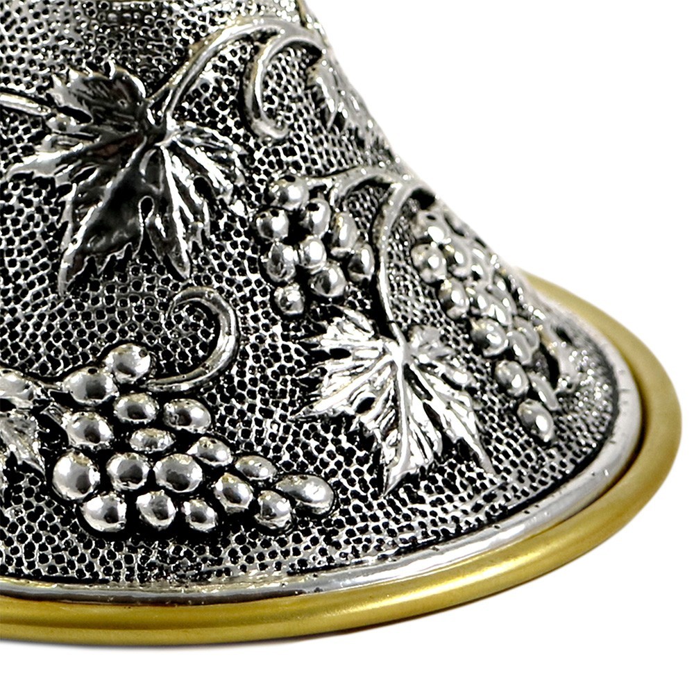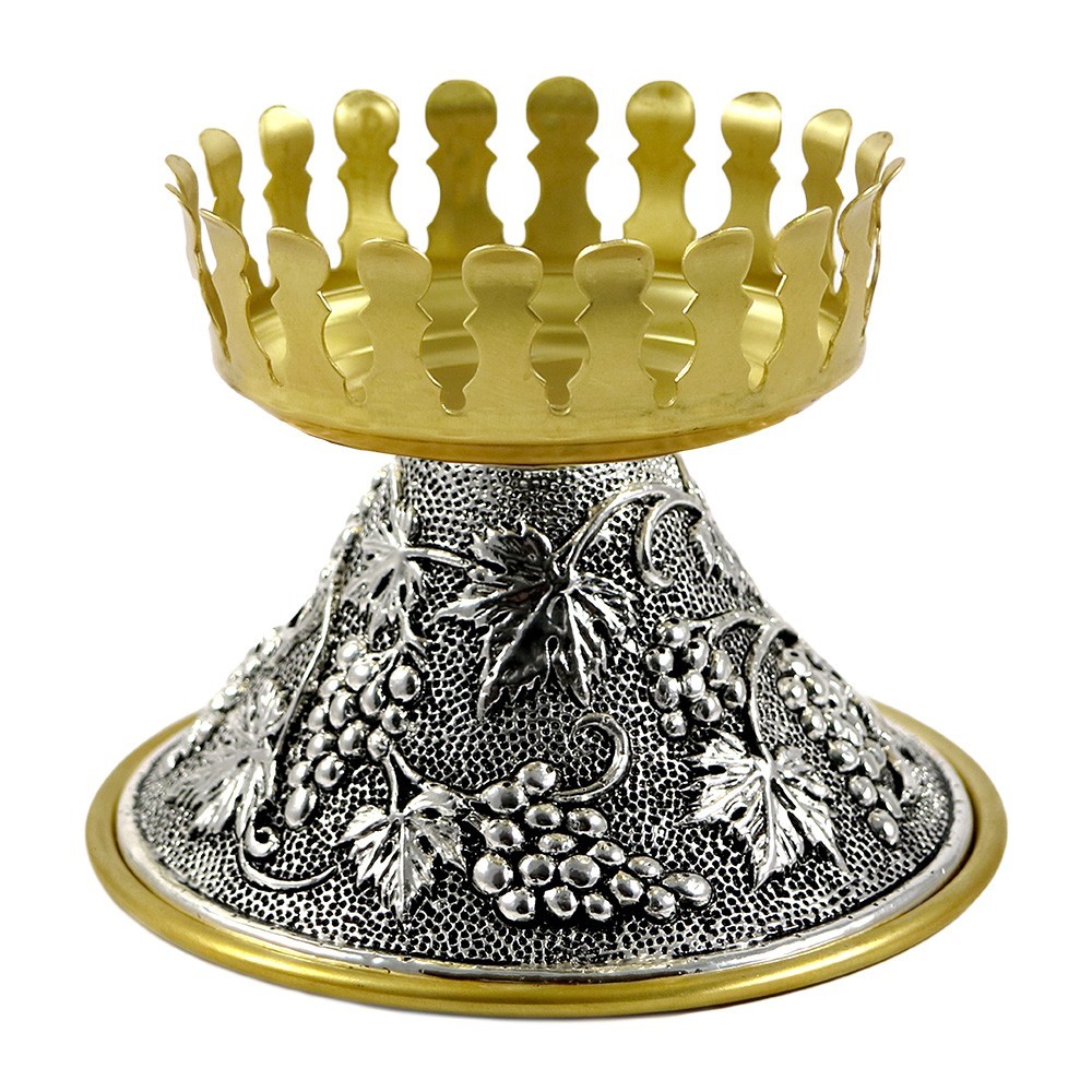 This holder is made of 24k brass and has a finely worked base with embossed decorations depicting grapes and vine leaves.