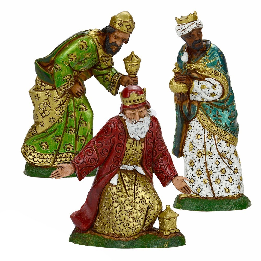 Complete set of Three Wise Men (Balthazar, Melchior and Gaspar). These statues are entirely made of PVC, which is a lightweight and unbreakable material. Made in Italy and handpainted with care to every detail.