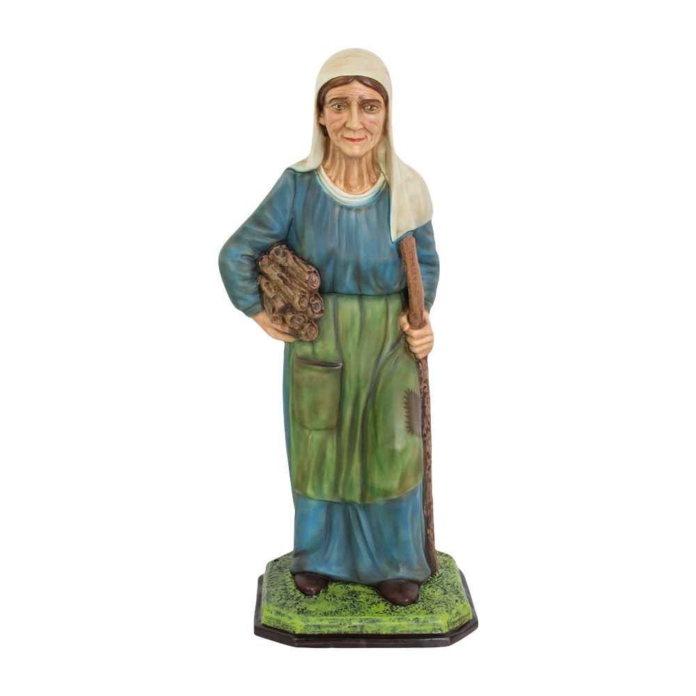 Old lady shepherd with wood in hollow resin, suitable for Neapolitan nativity scene of 100 cm.