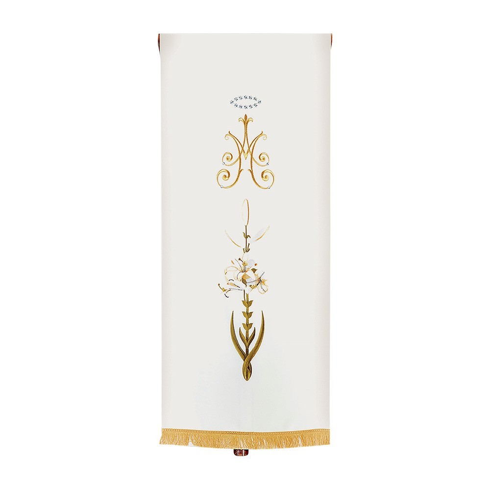 Lectern cover with Marian symbol, bias cut and golden fringes.