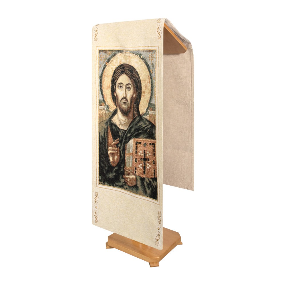 Finely embroidered lectern cover with image of Christ Pantocrator.