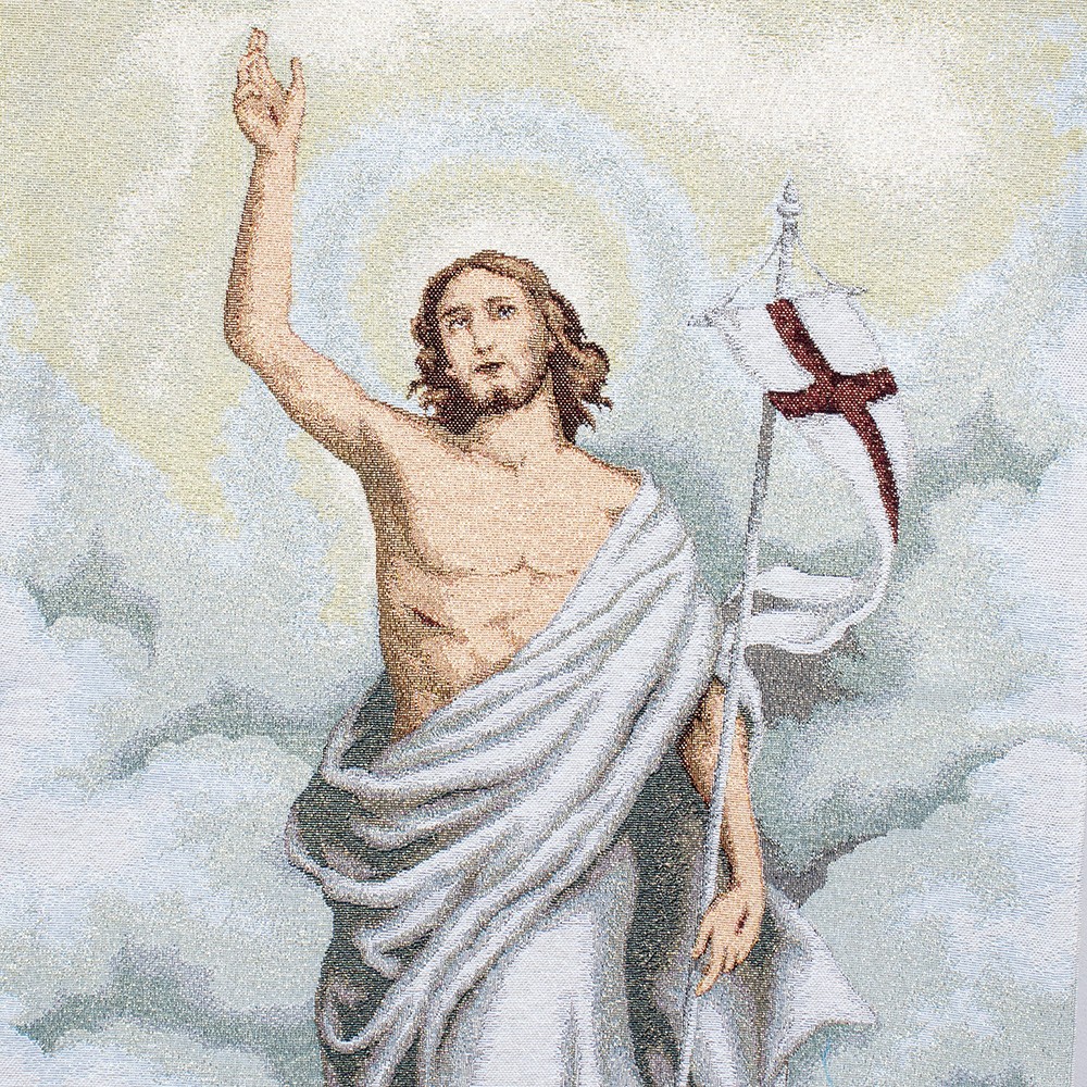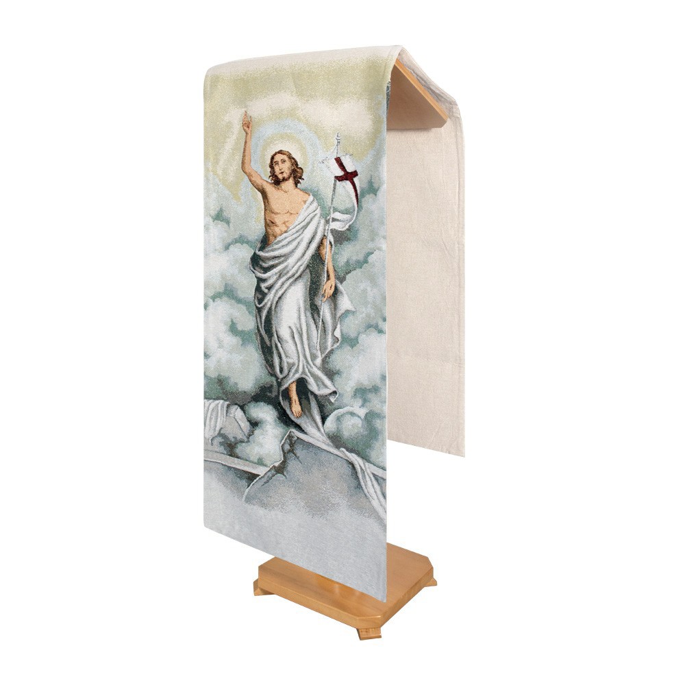 Lectern cover decorated with the image of Risen Jesus Christ.