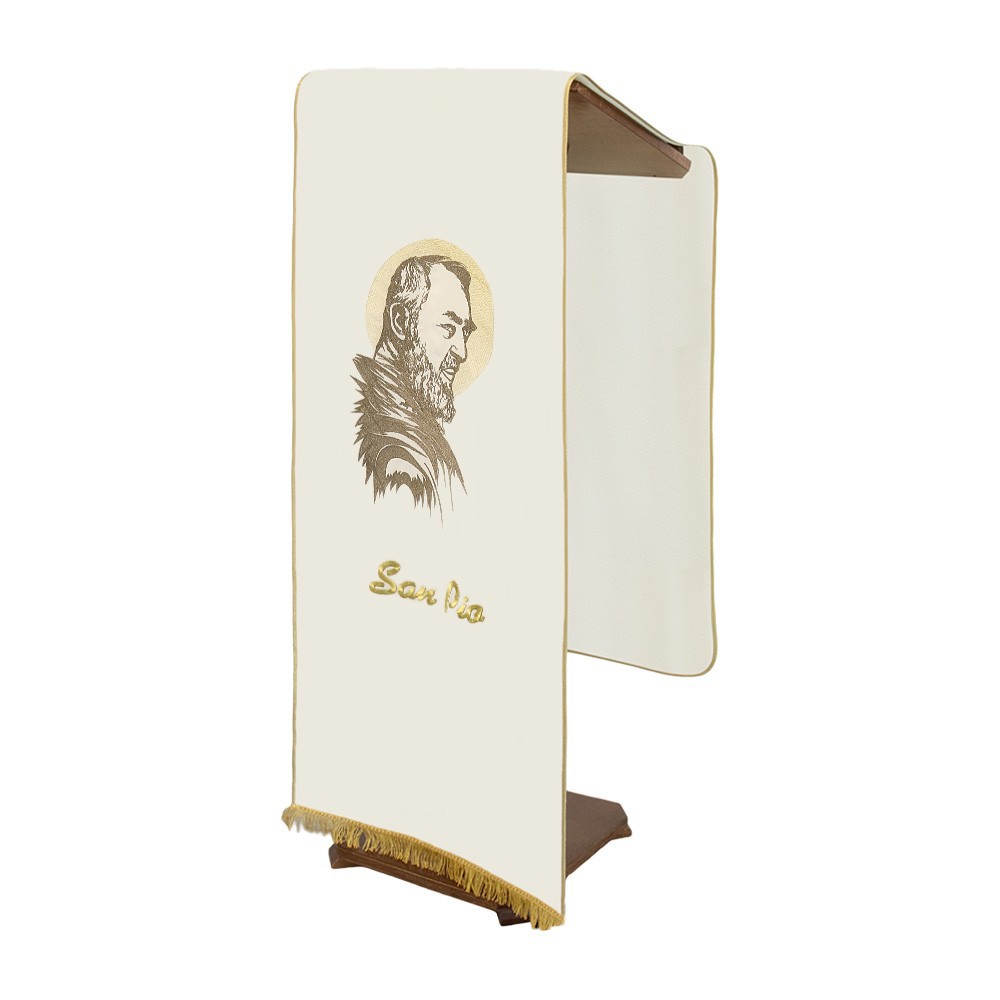 The lectern cover is finely embroidered by machine with excellent quality yarn depicting Saint Pio’s face and is enriched with golden fringes.