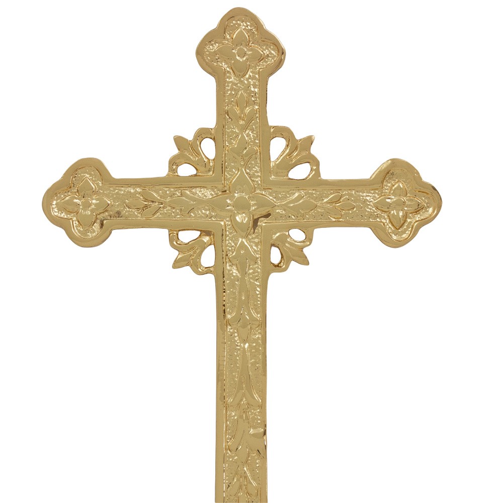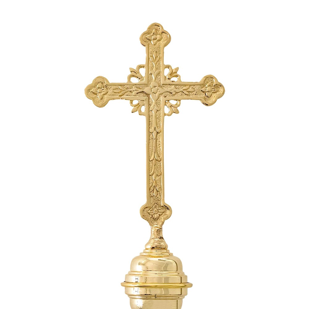 Cross-shaped topper for banner in brass.