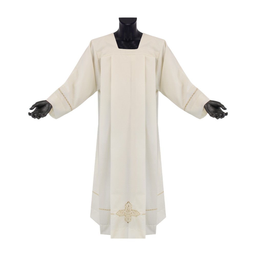 Guaranteed Shipping in 24-48 hThe alb is made of an ultra-lightweight wool and polyester blend fabric.